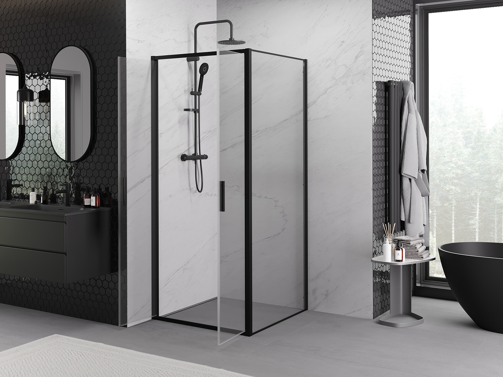 Mexen Exo sprchový kout posuvný 80 x 80 cm, průhledný, černý - 814-080-080-70-00