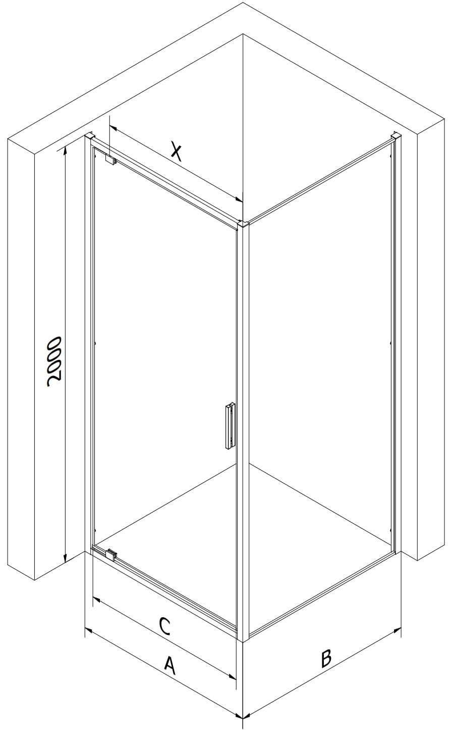 Rozměr: 70x75 cm (dveře 70 cm. stěna 75 cm)