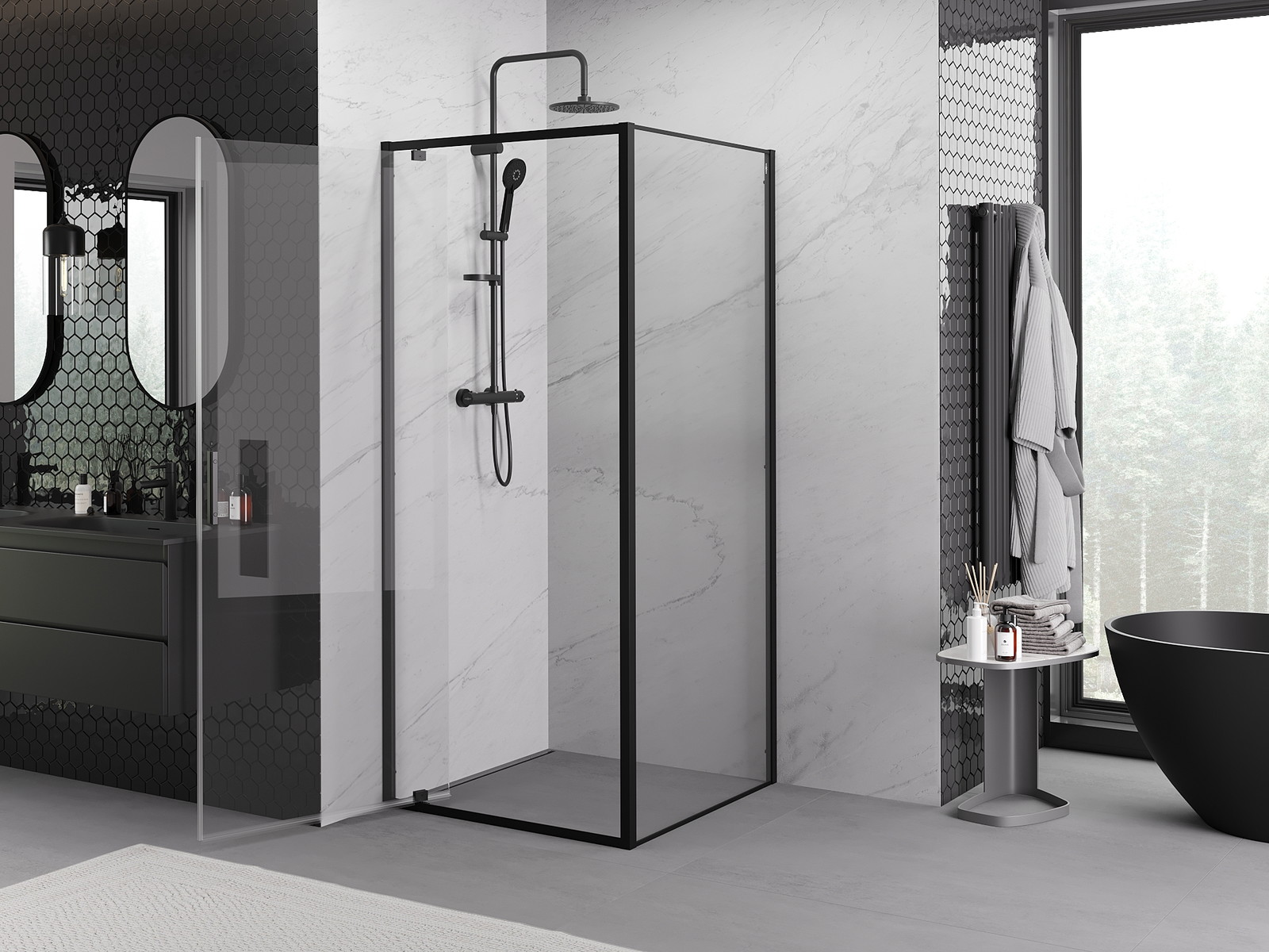 Mexen Exo sprchový kout s otevíracími dveřmi 80 x 80 cm, transparentní, černý - 8181-080-080-70-00