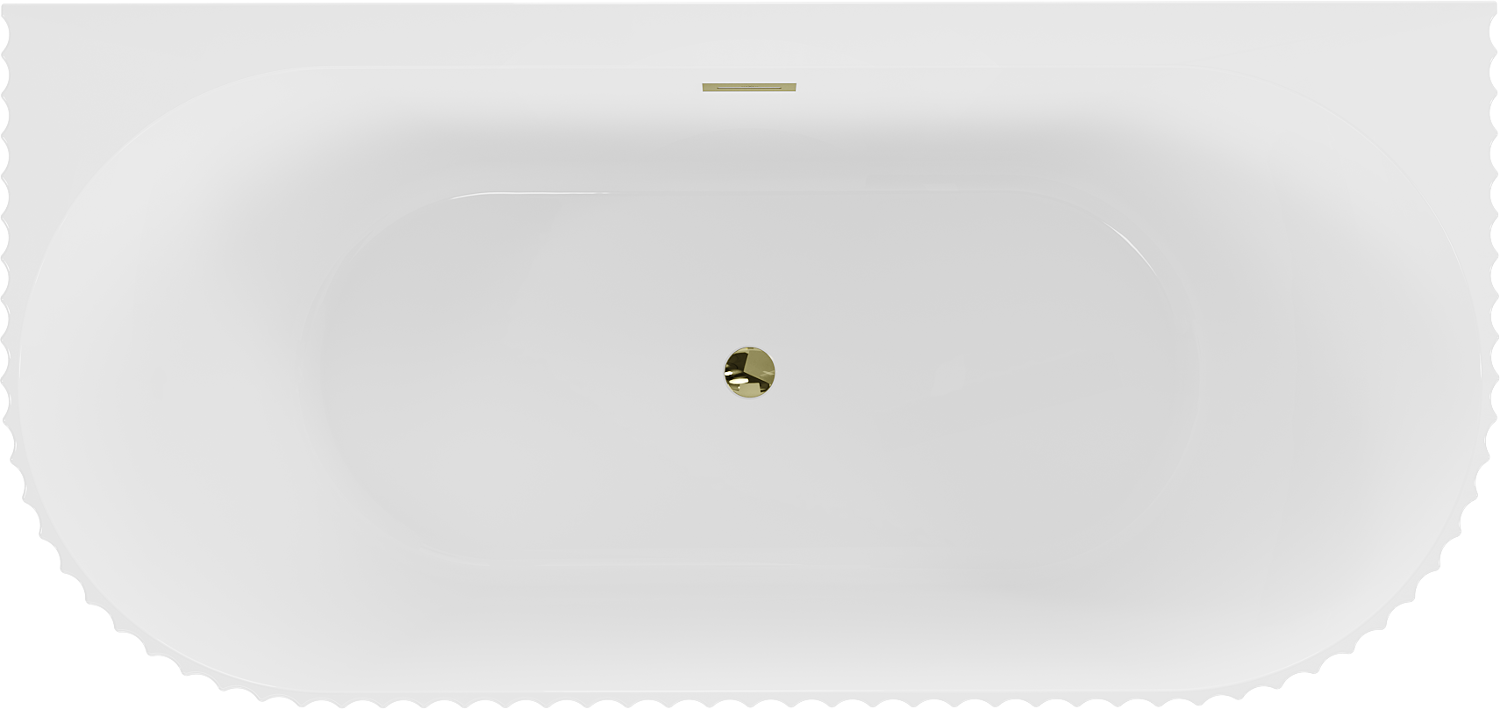 Mexen Sella samostatně stojící vana ke stěně rýhovaná 150 x 75 cm, bílá lesk, přepad zlatý - 52711507500-50