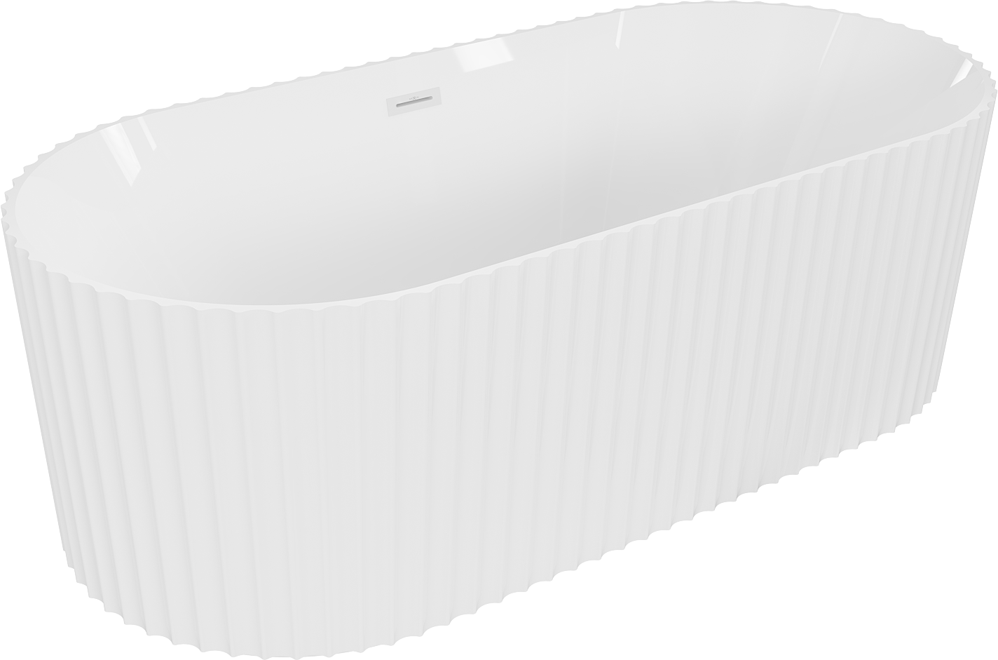 Mexen Paola volně stojící vana rýhovaná 150 x 75 cm, bílá lesk, bílý přeliv - 52721507500-20