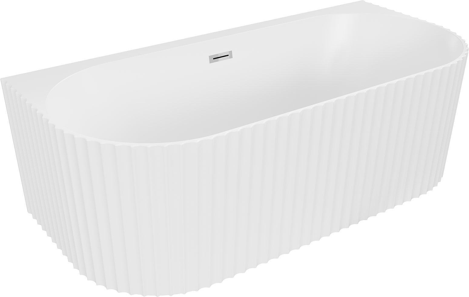 Mexen Sella volně stojící vanová vana přístěnná rýhovaná 150 x 75 cm, bílá mat, přepad chrom - 52711507501-01