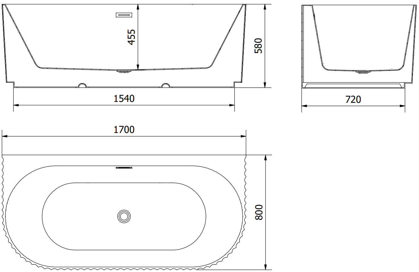 Mexen Sella volně stojící přisazená vana drážkovaná 170 x 80 cm, černý mat, přepad gun metal - 52711708071-95