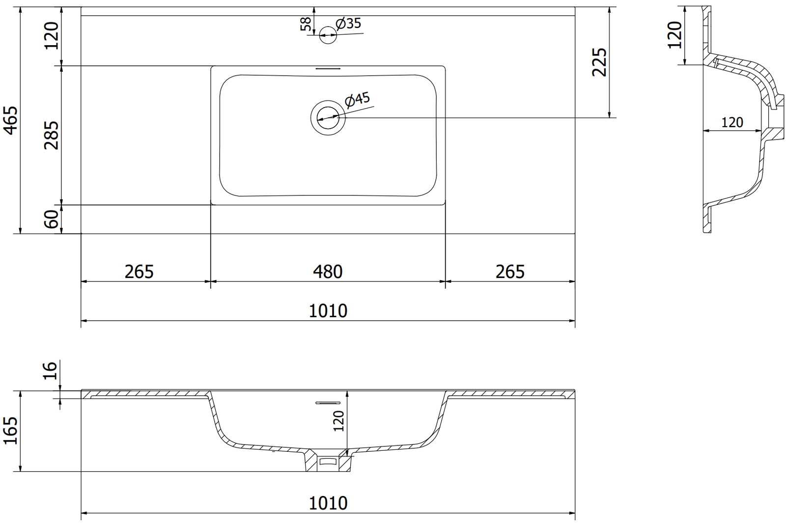Přepadový otvor je nazýván "otvorem bezpečnosti". Díky němu nadbytečná voda odtéká, takže voda se nedostane mimo okraj výrobku, když je spodní odtok uzavřen. Je to velmi bezpečné a praktické řešení.