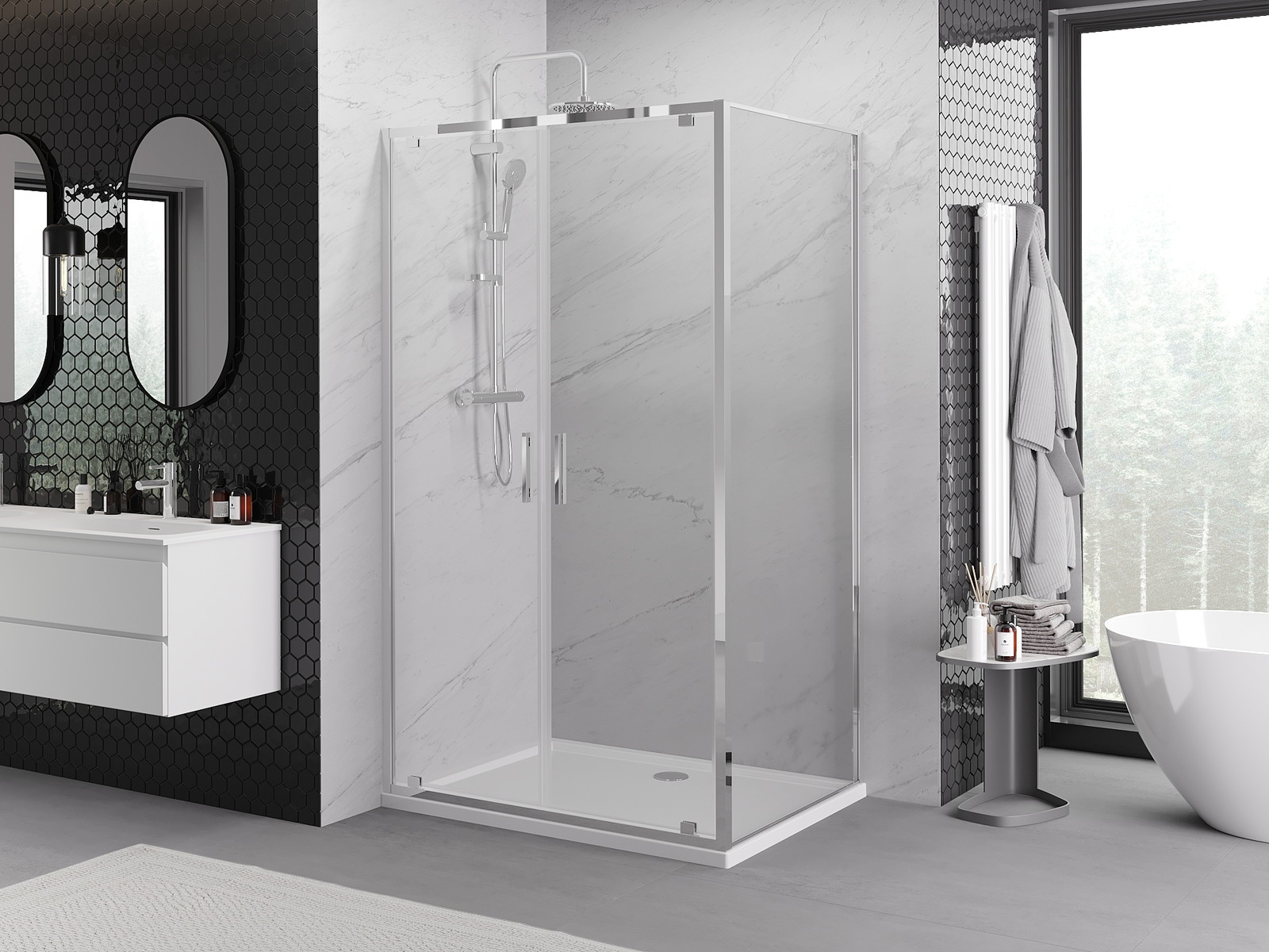 Sprchový kout Mexen Exo nabízí moderní a elegantní řešení pro každou koupelnu. Díky rozměrům 100x75 cm a výšce 200 cm se perfektně přizpůsobí mnoha prostorům. Transparentní, tvrzené sklo o tloušťce 6 mm s chromovanou povrchovou úpravou dodává koutku stylový vzhled. Univerzální montáž a možnost instalace na sprchovou vaničku nebo dlaždice usnadňují adaptaci. Křídlové dveře, hliníkový profil a kovová rukojeť zvyšují funkčnost a komfort. Navíc nátěr usnadňující čištění a systém odvodu vody zvyšují užitné vlastnosti produktu.