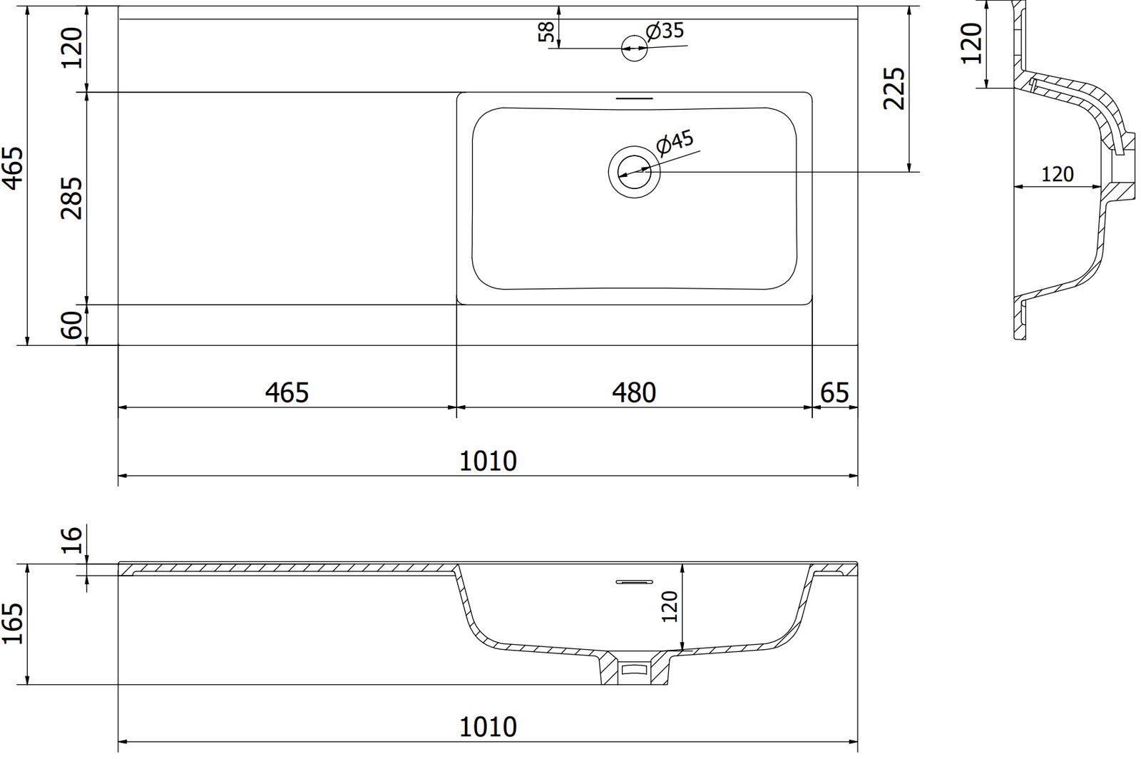 Mexen Otis umyvadlo zapuštěné v desku pravé 101 x 46,5 cm, černá mat - 25181071P