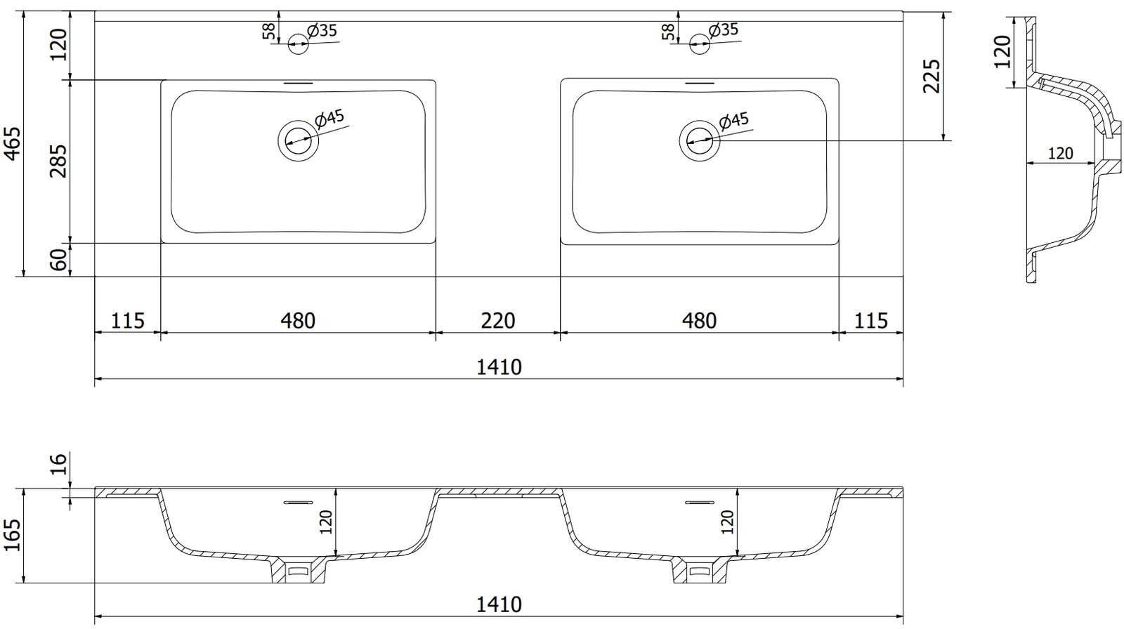 Mexen Otis dvojumyvadlo zapuštěné do desky 141 x 46,5 cm, černá mat - 25181471D