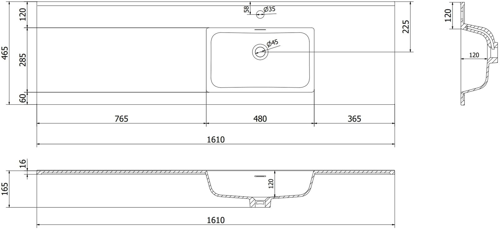 Mexen Otis umyvadlo zapuštěné do desky pravé 161 x 46,5 cm, černá mat - 25181671P