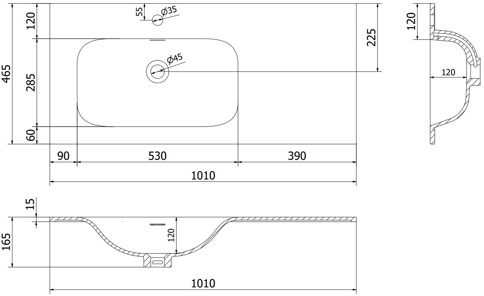 Typ: Zapuštěné do desky, Levá