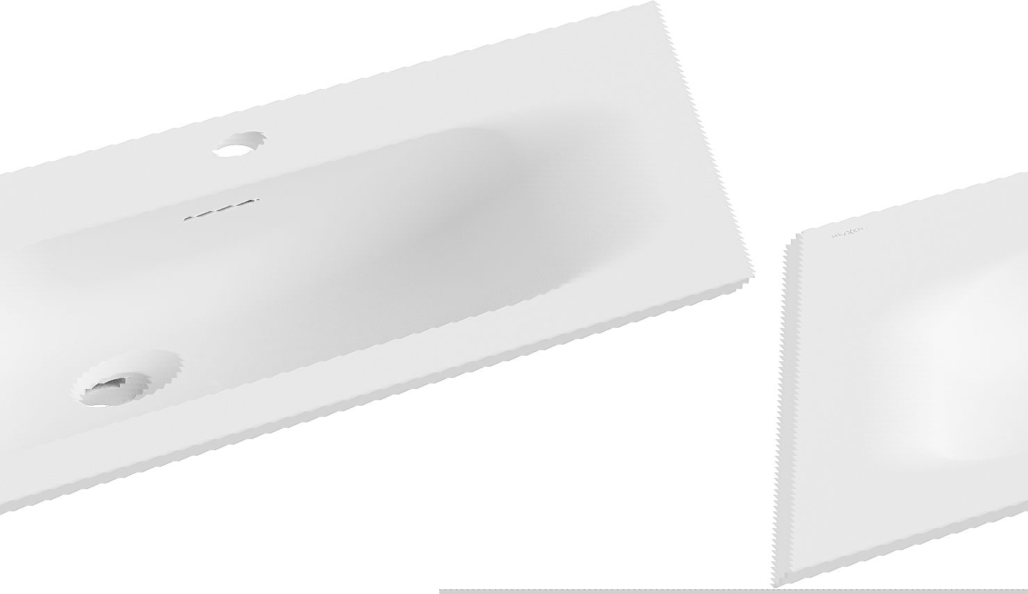 Umyvadlo má otvor, ve kterém lze namontovat baterii. Umožňuje to ušetřit cenný prostor v koupelně a zvýraznit její estetiku. Toto řešení také usnadňuje udržování čistoty kolem umyvadla.
