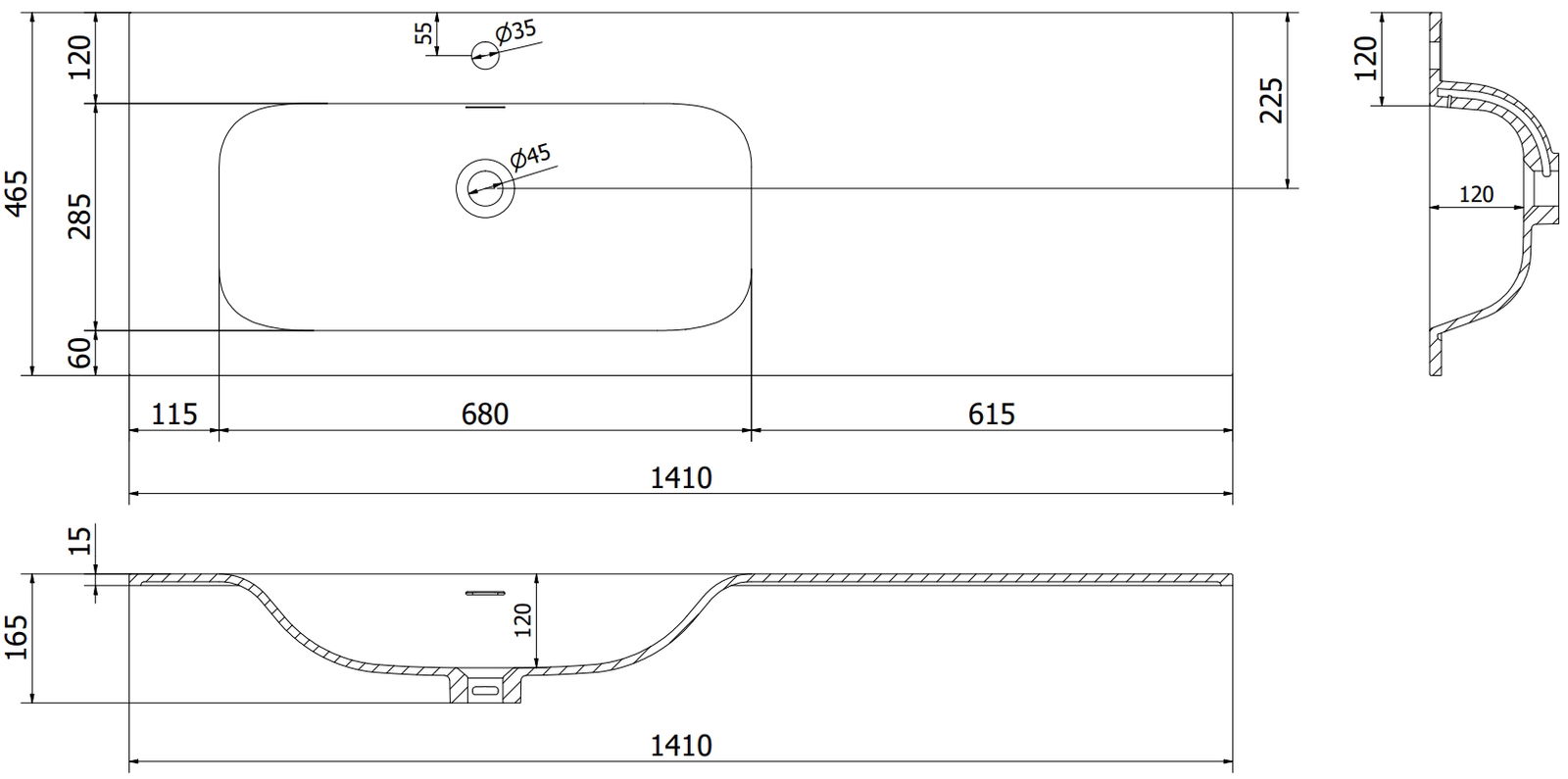Umyvadlo má otvor, ve kterém lze namontovat baterii. Umožňuje to ušetřit cenný prostor v koupelně a zvýraznit její estetiku. Toto řešení také usnadňuje udržování čistoty kolem umyvadla.