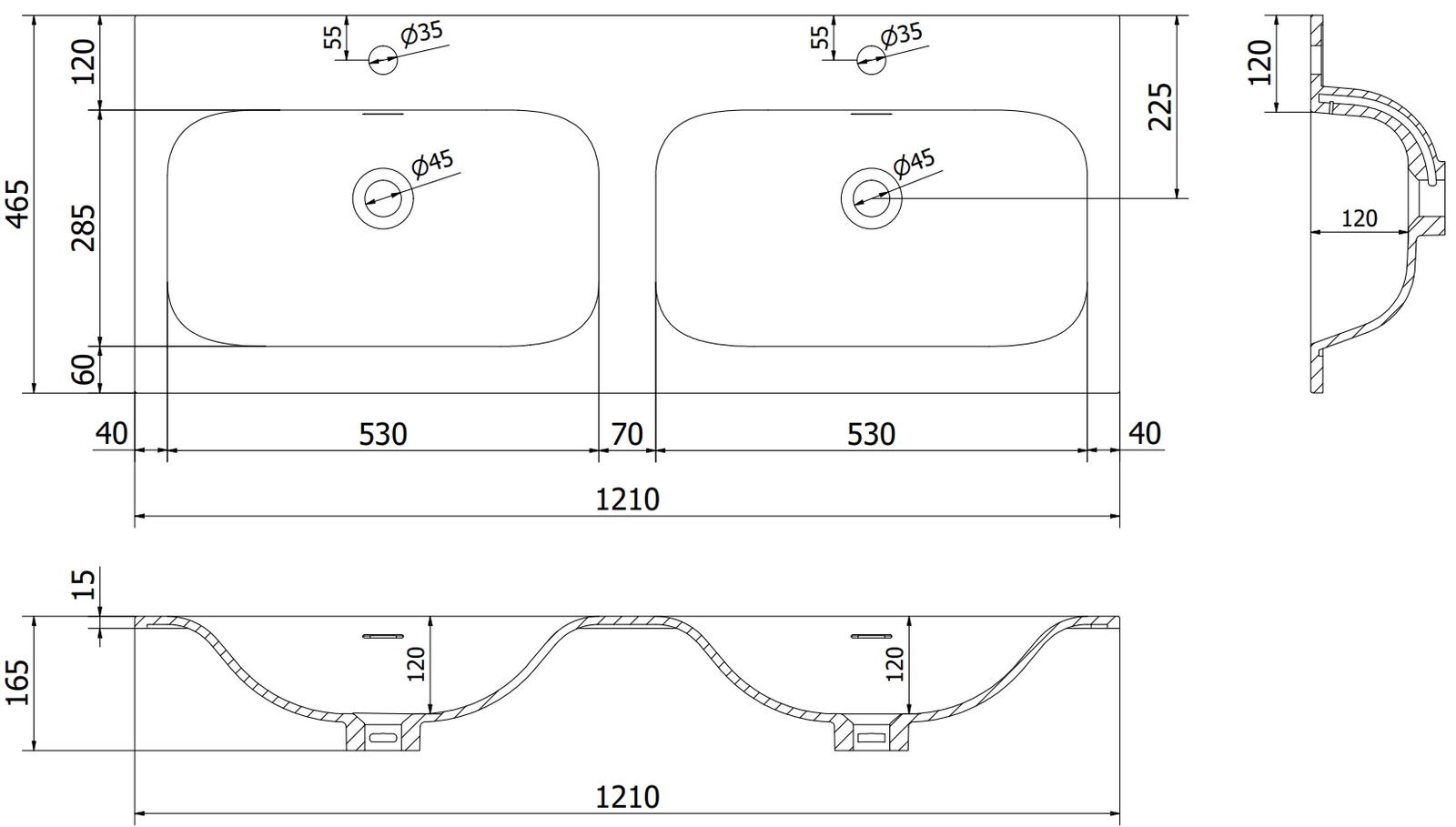 Mexen Vela umyvadlo zapuštěné v desce dvojité 121 x 46,5 cm, černý mat - 25231271D