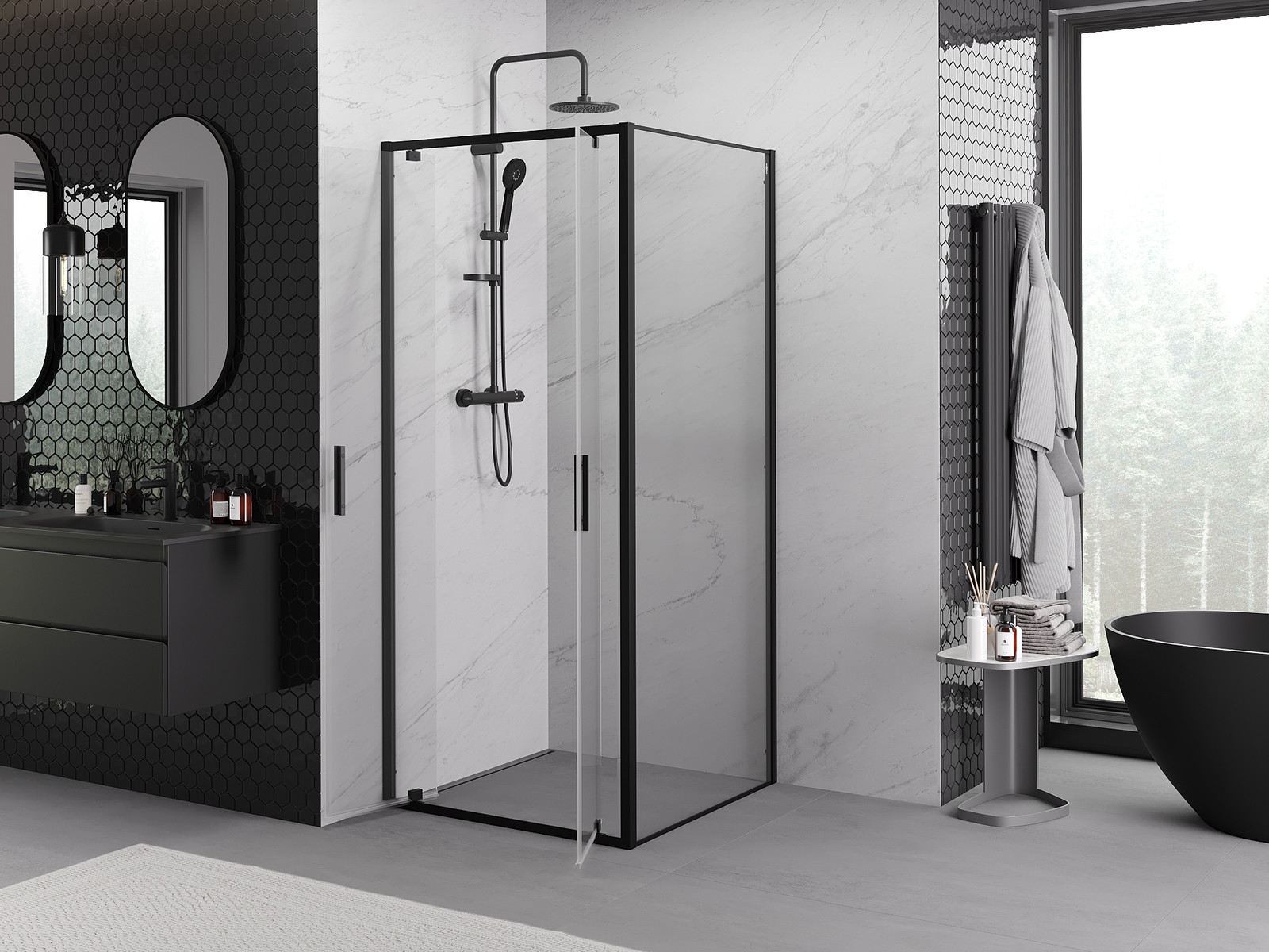 Mexen Rio čtvercová sprchová kabina 90 x 90 cm, transparentní, černá - 860-090-090-70-00