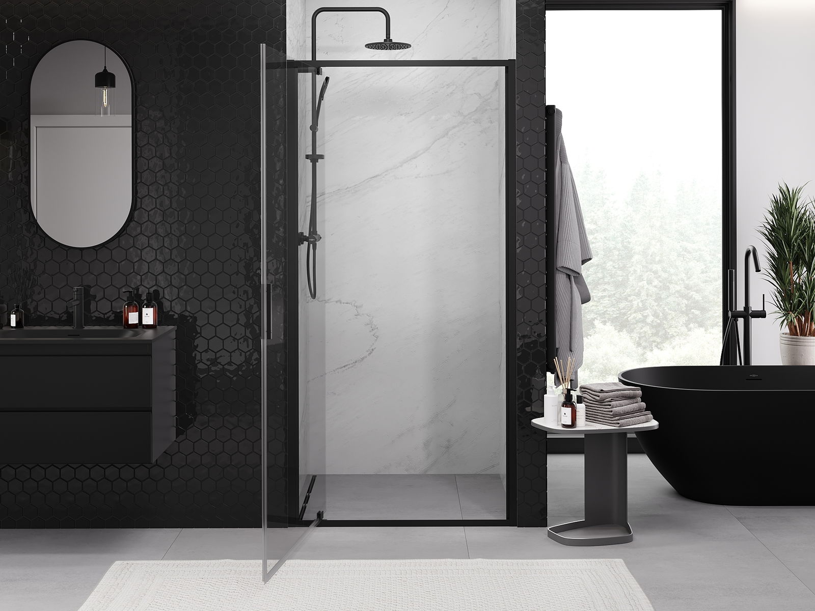 Mexen Exo sprchové dveře otočné 90 cm, transparentní, černé - 8181-090-000-70-00