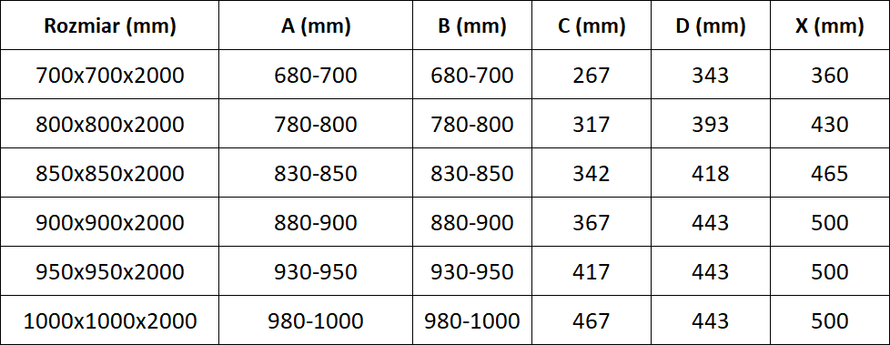 Sprchové kouty, dveře a stěny jsou standardně přizpůsobeny pro montáž na sprchové vaničky určitých rozměrů. Právě tyto rozměry jsou uvedeny v názvu nebo popisu výrobku. Je však třeba mít na paměti, že skutečné rozměry prvků se mohou mírně lišit od nominálních hodnot. V případě plánované instalace přímo na podlahu se doporučuje pečlivě zkontrolovat vnější rozměry a uspořádání prvků podle technického výkresu.