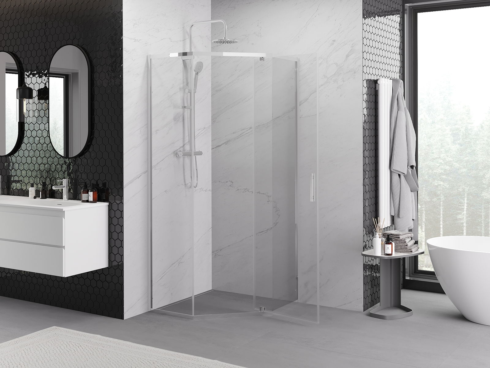 Mexen Exo pětiúhelníková sprchová kabina sklápěcí 100 x 100 cm, transparentní, chrom - 812-100-100-01-00