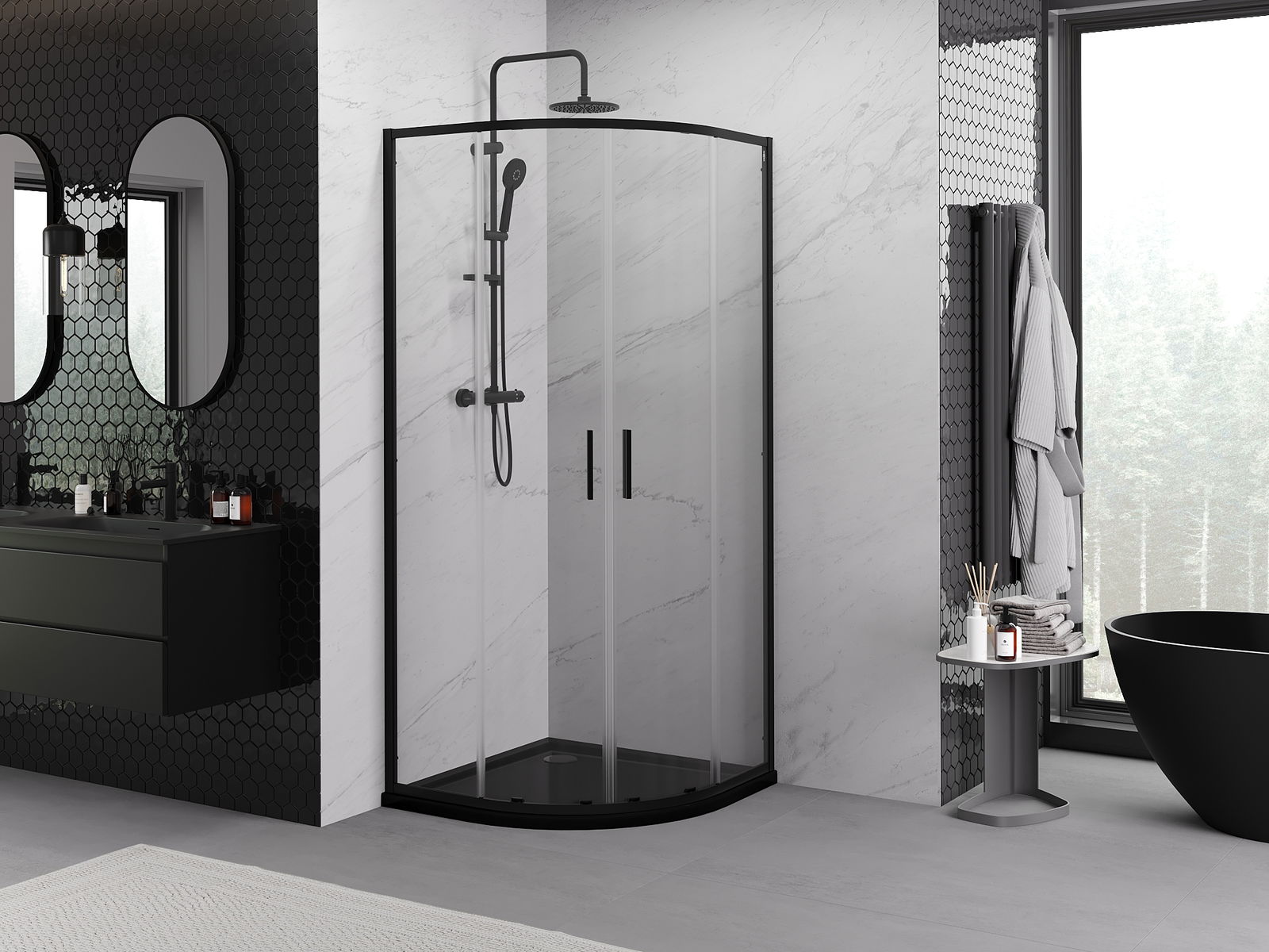 Mexen Exo čtvrtkruhová sprchová kabina posuvná 80 x 80 cm, transparentní, černá - 8132-080-080-70-00