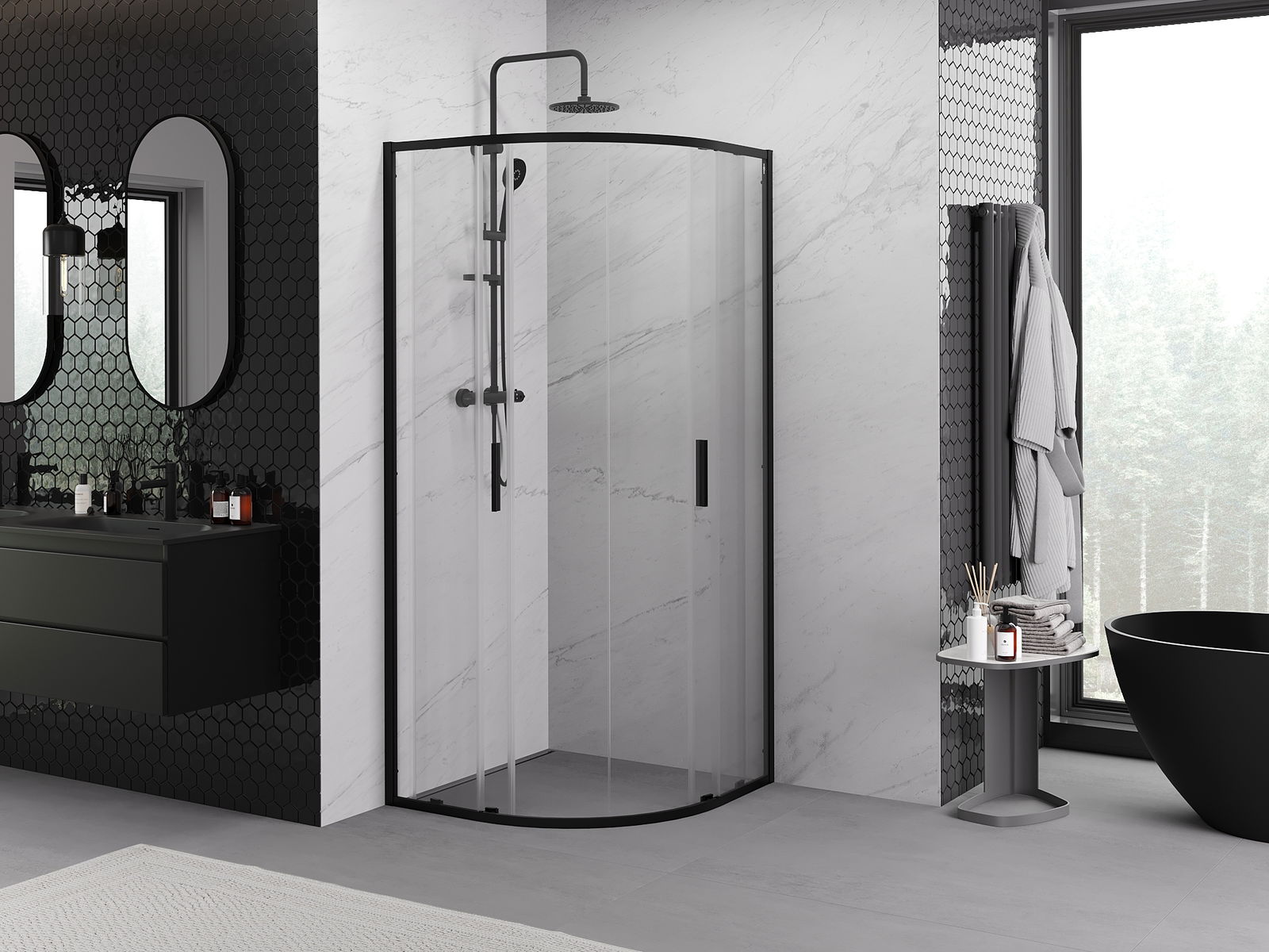 Mexen Exo polokruhová sprchová kabina posuvná 90 x 90 cm, transparentní, černá - 8132-090-090-70-00