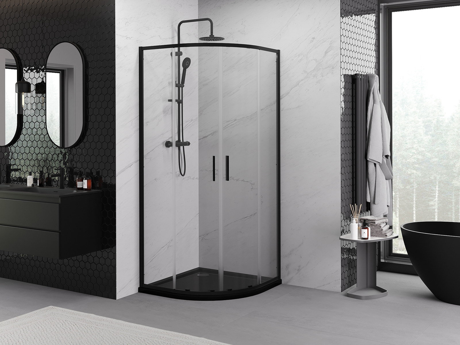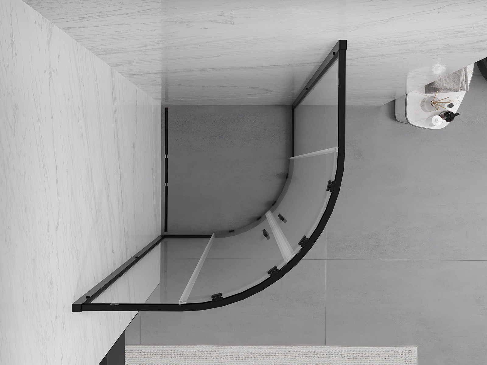 Mexen Exo půlkruhová sprchová kabina posuvná 90 x 90 cm, transparentní, černá - 8132-090-090-70-00