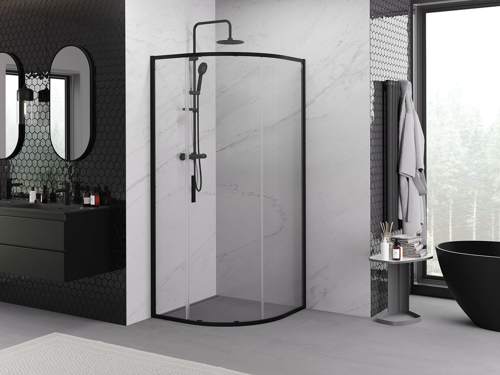 Mexen Exo půlkruhová sprchová kabina posuvná 80 x 80 cm, transparentní, černá - 8131-080-080-70-00