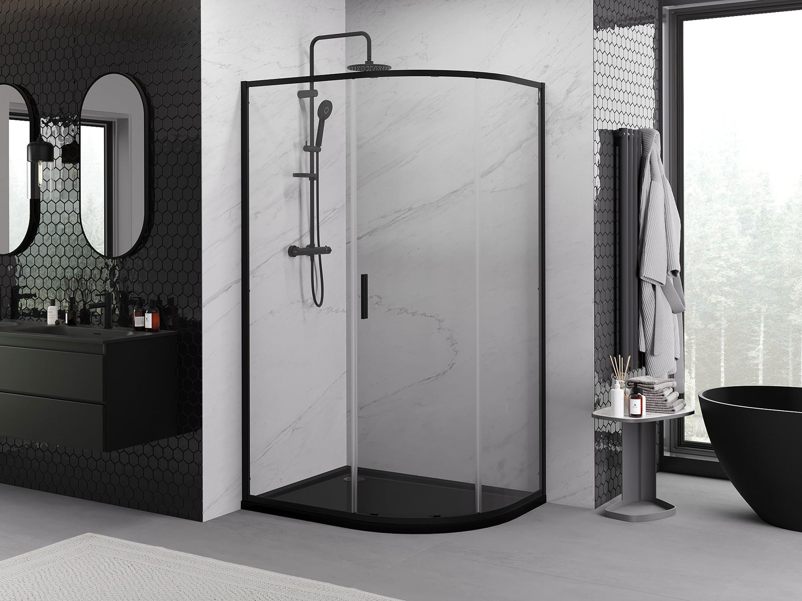 Mexen Exo sprchový kout půlkruhový asymetrický posuvný 100 x 90 cm, transparentní, černá - 8131-100-090-70-00