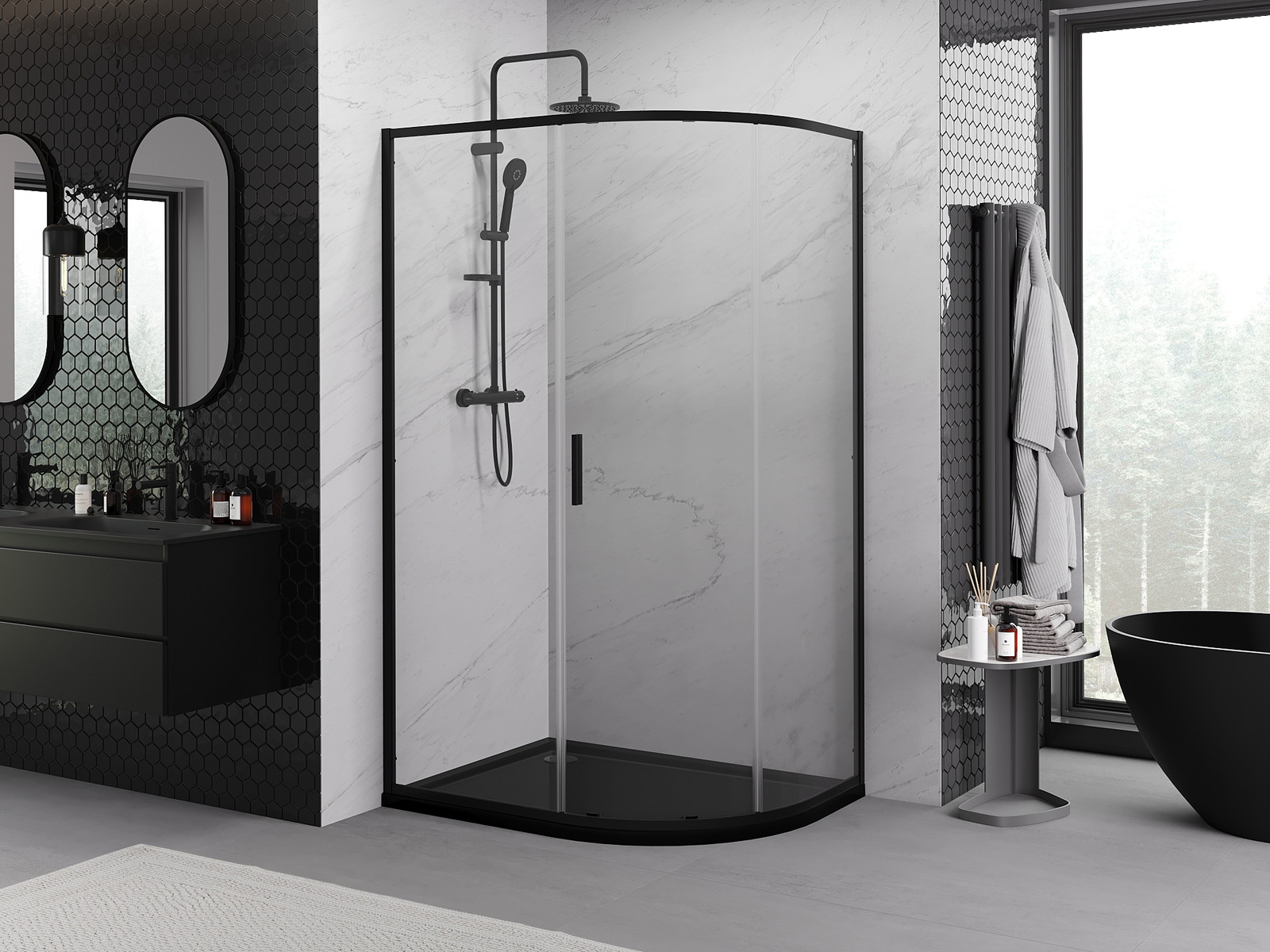 Mexen Exo asymetrická půlkruhová sprchová kabina posuvná 120 x 90 cm, transparentní, černá - 8131-120-090-70-00