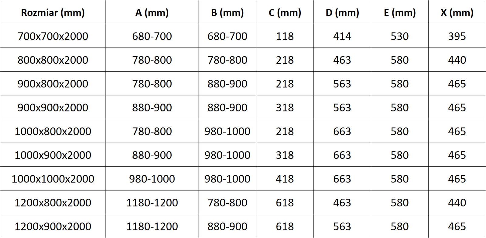 Sprchové kouty, dveře a stěny jsou standardně přizpůsobeny pro montáž na sprchové vaničky určitých rozměrů. Právě tyto rozměry jsou uvedeny v názvu nebo popisu výrobku. Je však třeba mít na paměti, že skutečné rozměry prvků se mohou mírně lišit od nominálních hodnot. V případě plánované instalace přímo na podlahu se doporučuje pečlivě zkontrolovat vnější rozměry a uspořádání prvků podle technického výkresu.
