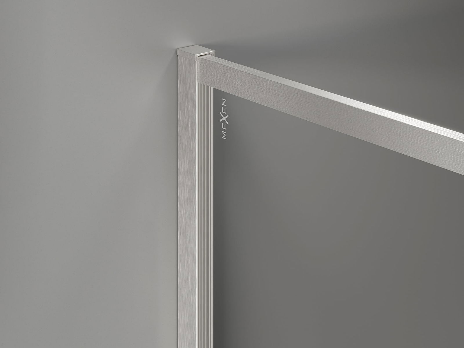 • Mexen Kioto-F sprchová stěna Walk-in s rámem 120 x 202 cm, matné sklo 8 mm, kartáčovaný nikl - 800-120-104-97-30