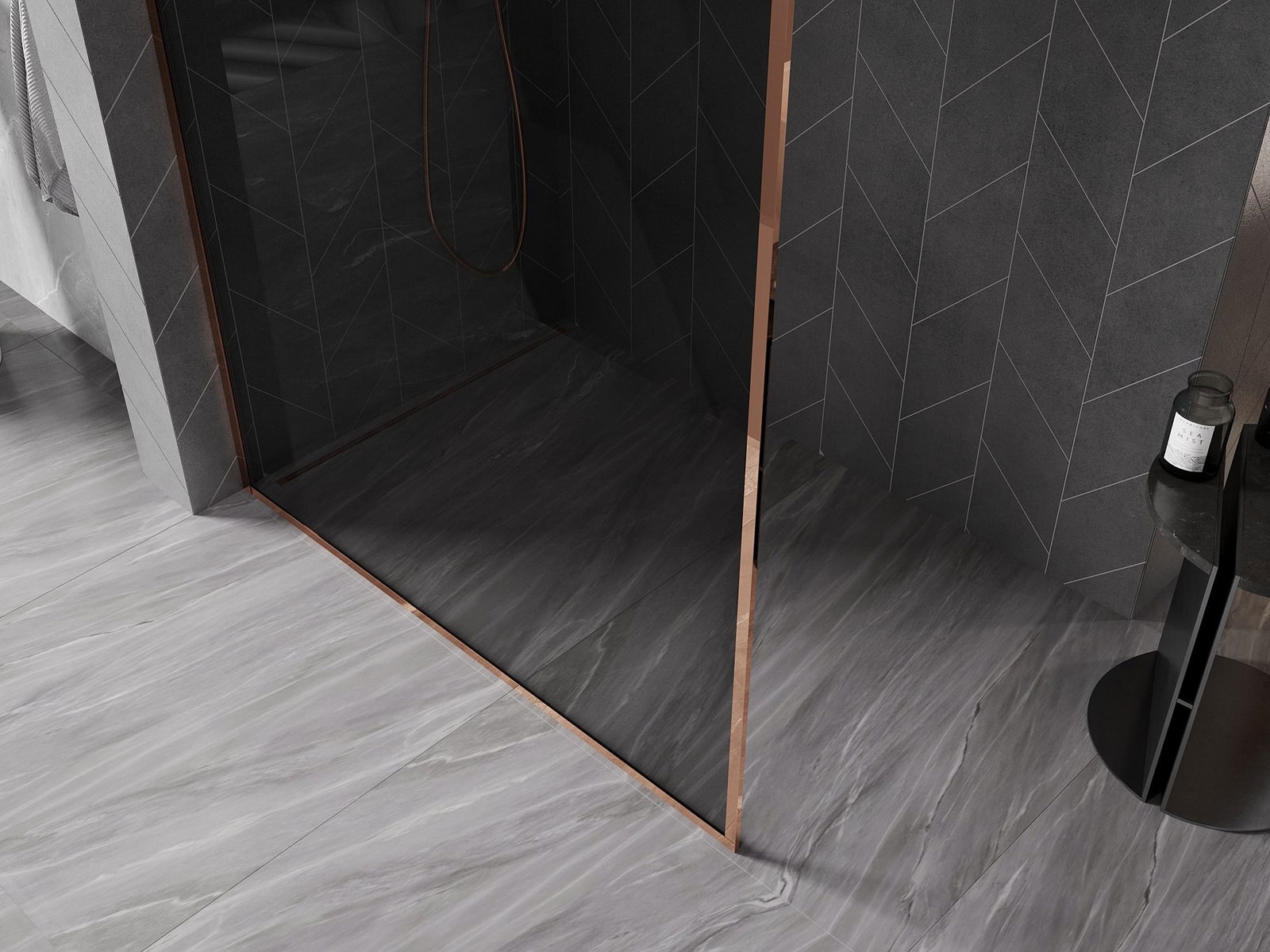 Mexen Kioto-F sprchová stěna Walk-in s rámem 70 x 202 cm, grafit 8 mm, růžové zlato - 800-070-104-60-40