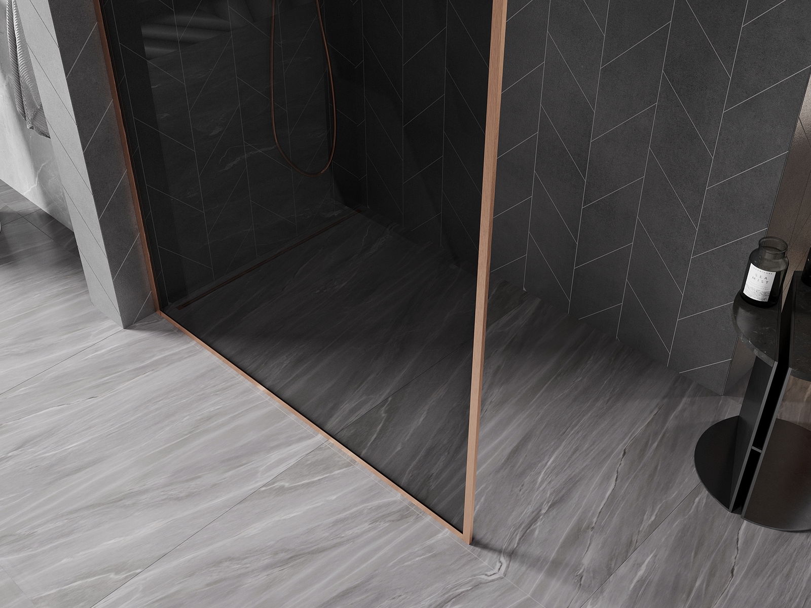 Mexen Kioto-F sprchová zástěna Walk-in s rámem 130 x 202 cm, grafit 8 mm, kartáčovaná měď - 800-130-104-65-40