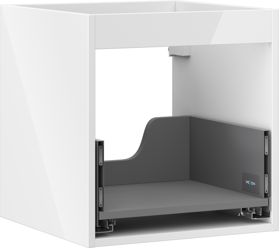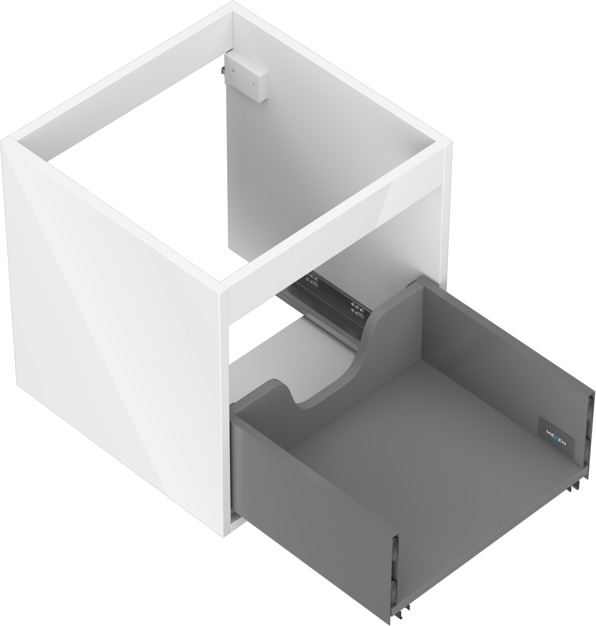 Výřez v zásuvce je navržen tak, aby pojmul sifon, který je nezbytný v instalacích umyvadlových. Díky tomu může být nábytek plně funkčně namontován, aniž by bylo nutné vzdát se prostoru v zásuvce ve prospěch instalace.