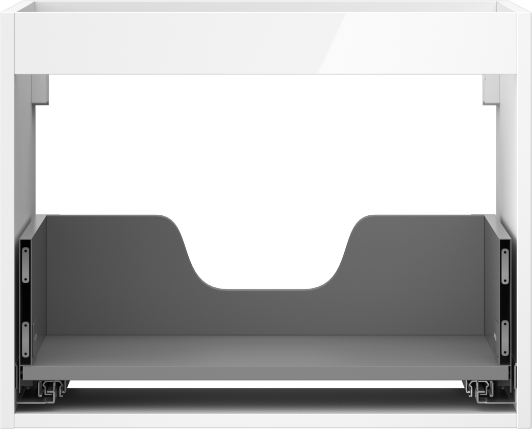 Výřez v zásuvce je navržen tak, aby pojmul sifon, který je nezbytný v instalacích umyvadlových. Díky tomu může být nábytek plně funkčně namontován, aniž by bylo nutné vzdát se prostoru v zásuvce ve prospěch instalace.
