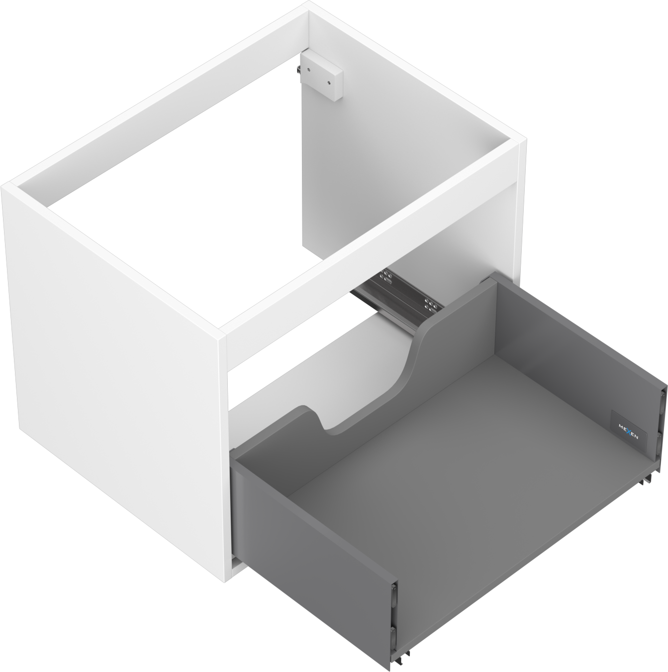 Výřez v zásuvce je navržen tak, aby pojmul sifon, který je nezbytný v instalacích umyvadlových. Díky tomu může být nábytek plně funkčně namontován, aniž by bylo nutné vzdát se prostoru v zásuvce ve prospěch instalace.