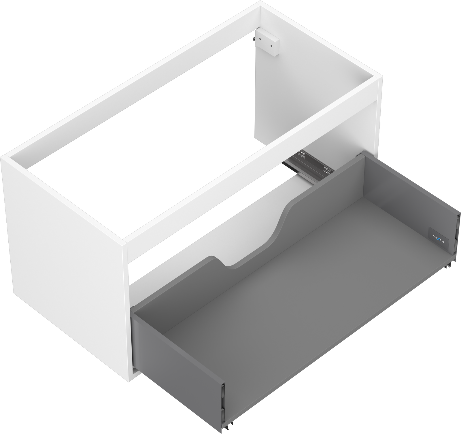 Výřez v zásuvce je navržen tak, aby pojmul sifon, který je nezbytný v instalacích umyvadlových. Díky tomu může být nábytek plně funkčně namontován, aniž by bylo nutné vzdát se prostoru v zásuvce ve prospěch instalace.
