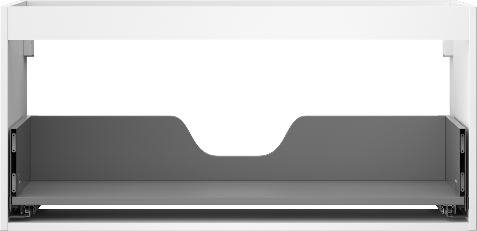 Výřez v zásuvce je navržen tak, aby pojmul sifon, který je nezbytný v instalacích umyvadlových. Díky tomu může být nábytek plně funkčně namontován, aniž by bylo nutné vzdát se prostoru v zásuvce ve prospěch instalace.