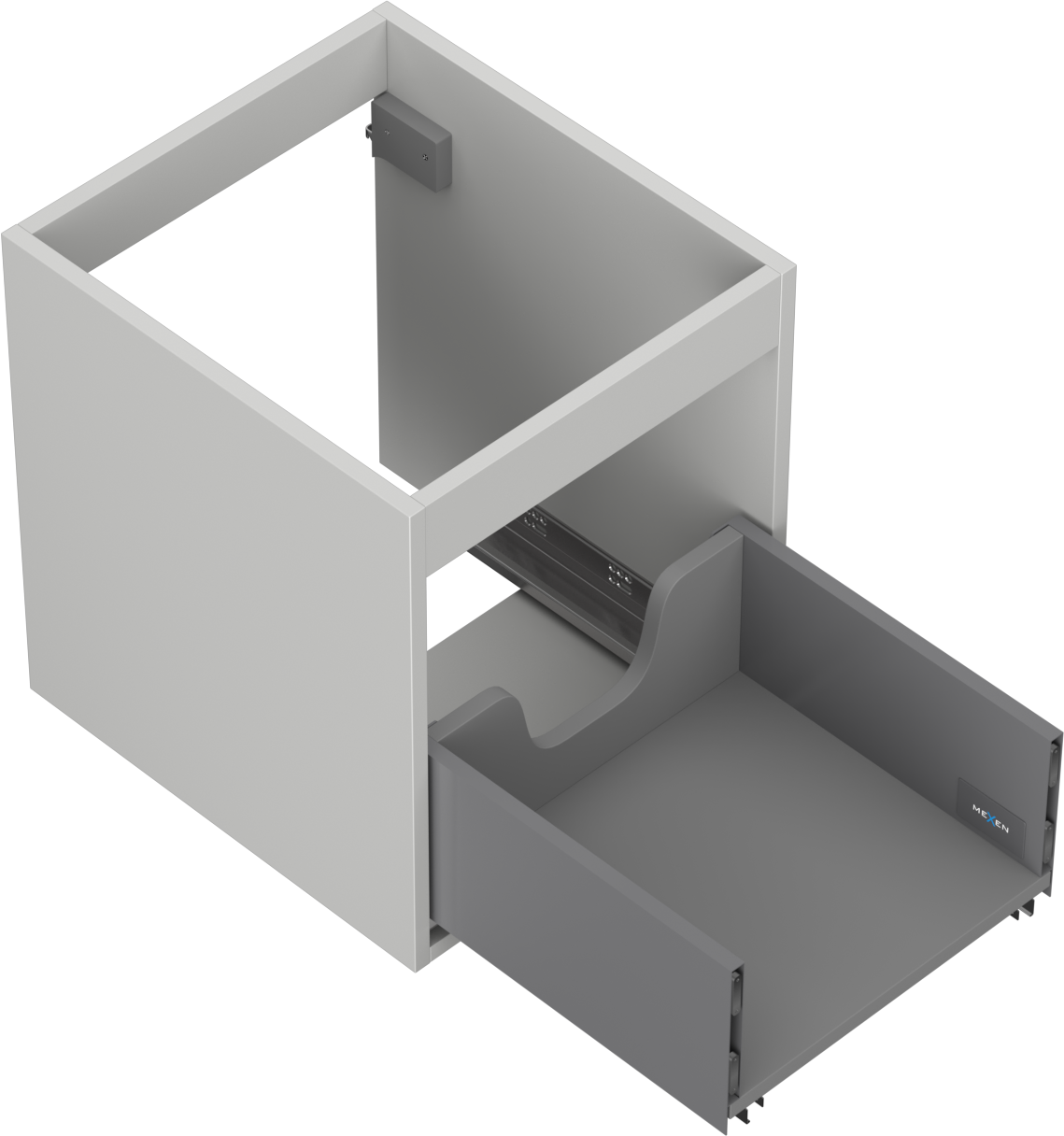 Výřez v zásuvce je navržen tak, aby pojmul sifon, který je nezbytný v instalacích umyvadlových. Díky tomu může být nábytek plně funkčně namontován, aniž by bylo nutné vzdát se prostoru v zásuvce ve prospěch instalace.