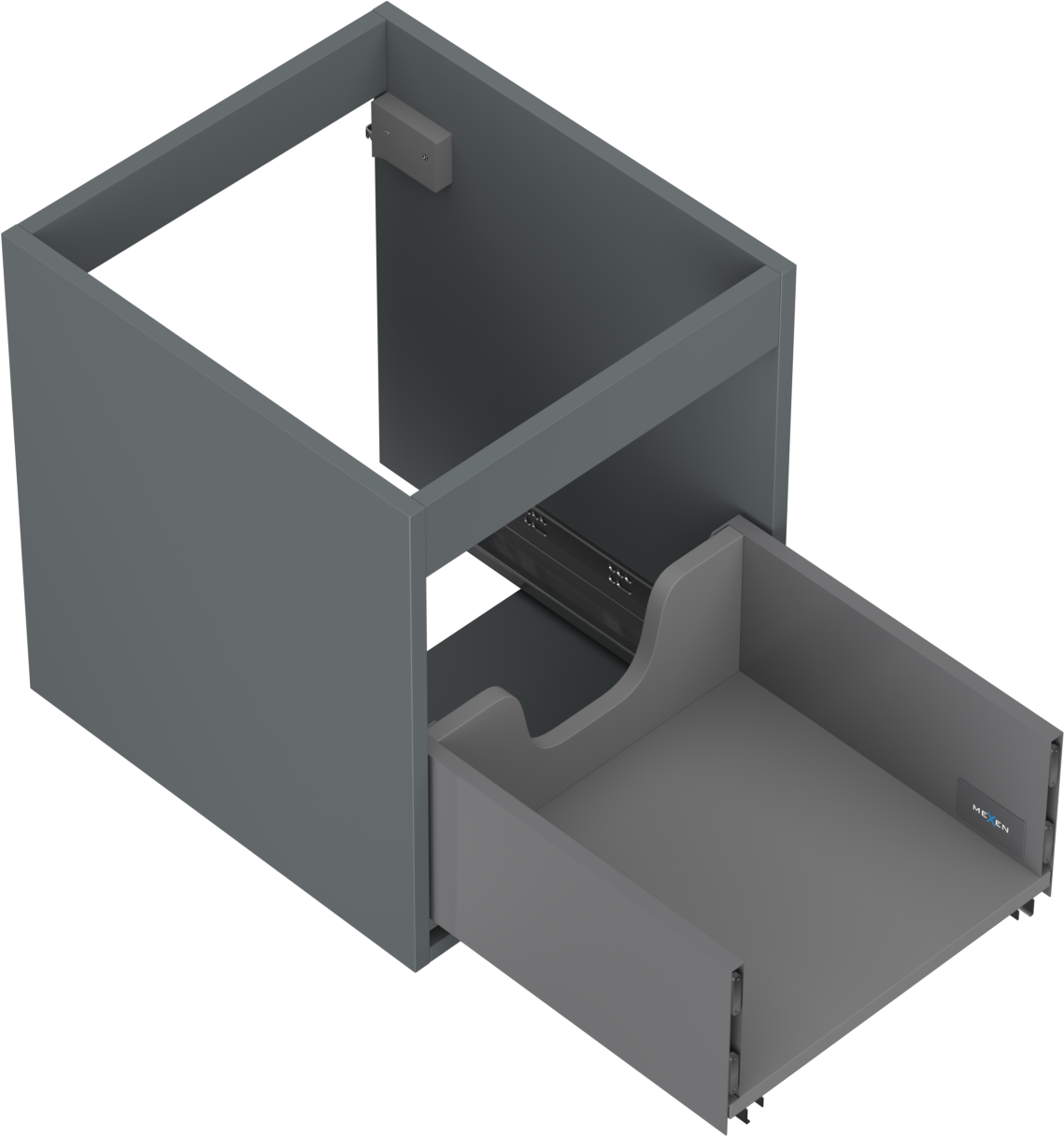 Výřez v zásuvce je navržen tak, aby pojmul sifon, který je nezbytný v instalacích umyvadlových. Díky tomu může být nábytek plně funkčně namontován, aniž by bylo nutné vzdát se prostoru v zásuvce ve prospěch instalace.