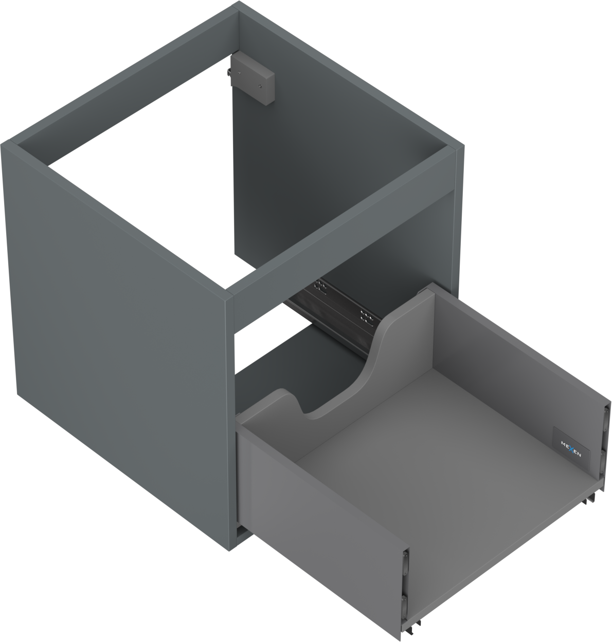Výřez v zásuvce je navržen tak, aby pojmul sifon, který je nezbytný v instalacích umyvadlových. Díky tomu může být nábytek plně funkčně namontován, aniž by bylo nutné vzdát se prostoru v zásuvce ve prospěch instalace.