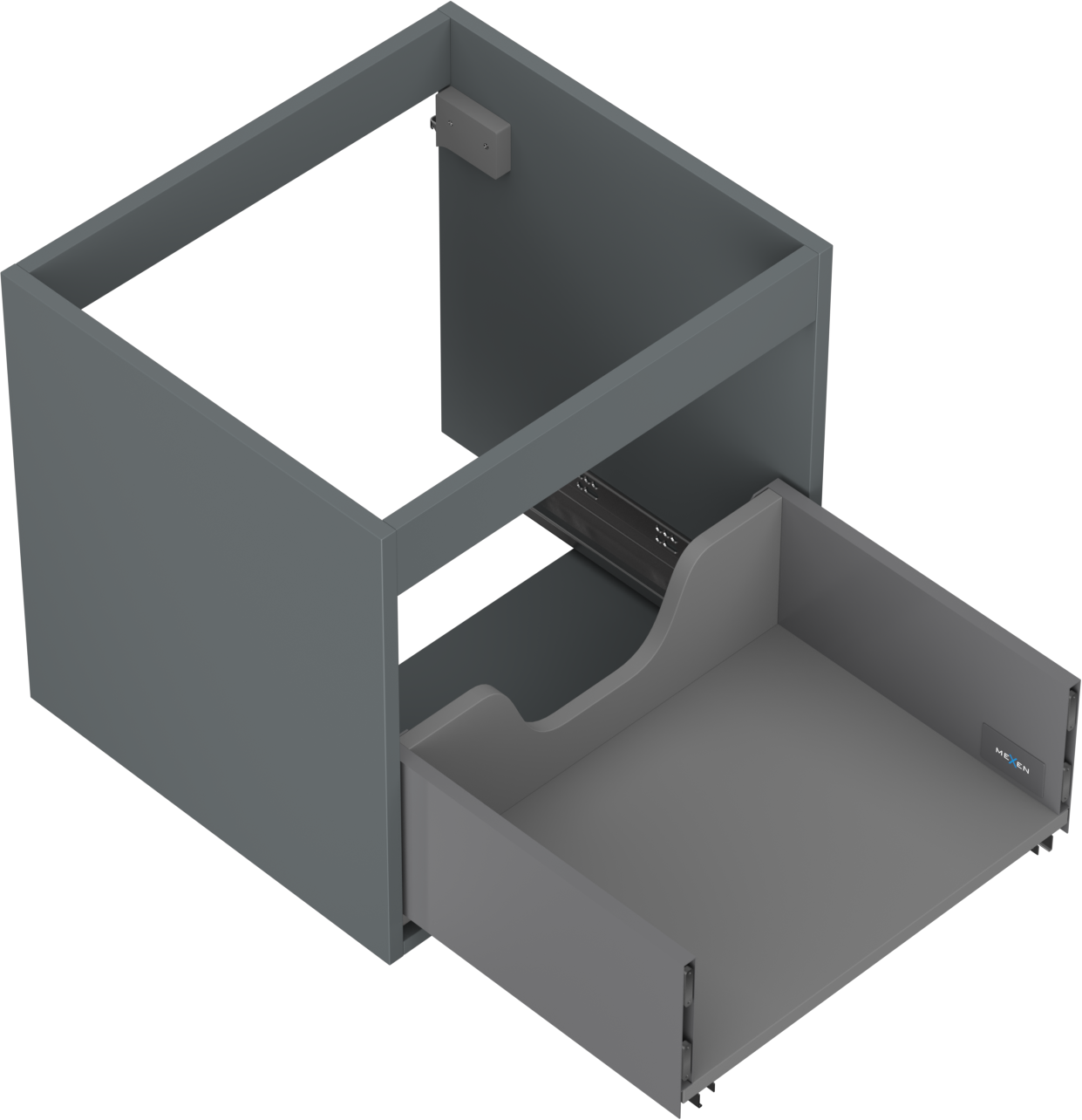 Výřez v zásuvce je navržen tak, aby pojmul sifon, který je nezbytný v instalacích umyvadlových. Díky tomu může být nábytek plně funkčně namontován, aniž by bylo nutné vzdát se prostoru v zásuvce ve prospěch instalace.