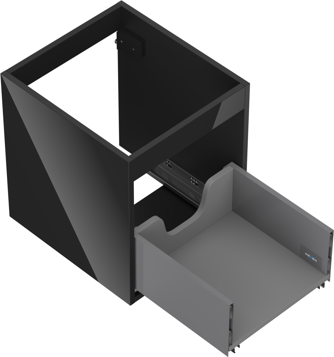 Výřez v zásuvce je navržen tak, aby pojmul sifon, který je nezbytný v instalacích umyvadlových. Díky tomu může být nábytek plně funkčně namontován, aniž by bylo nutné vzdát se prostoru v zásuvce ve prospěch instalace.