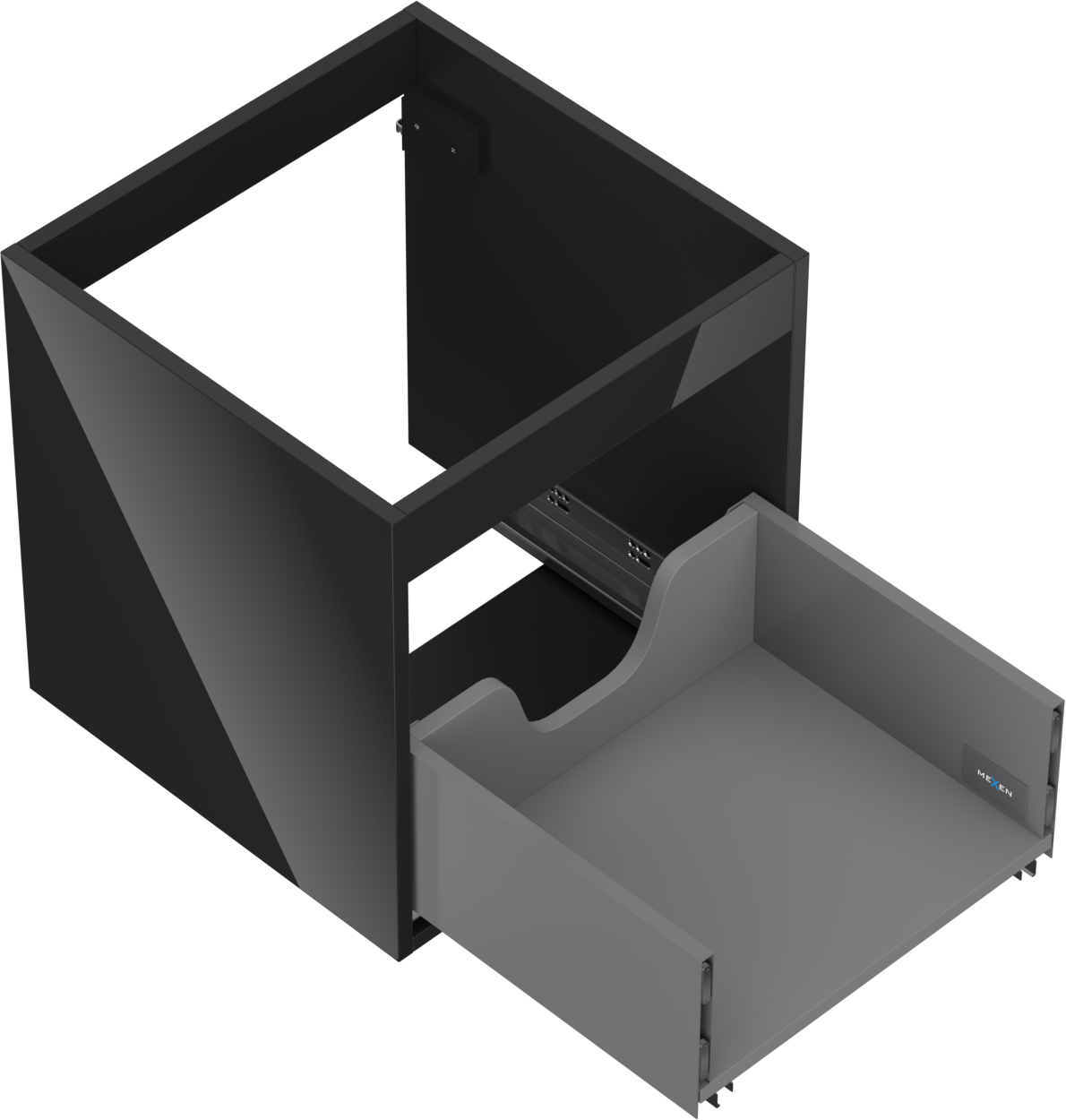 Výřez v zásuvce je navržen tak, aby pojmul sifon, který je nezbytný v instalacích umyvadlových. Díky tomu může být nábytek plně funkčně namontován, aniž by bylo nutné vzdát se prostoru v zásuvce ve prospěch instalace.