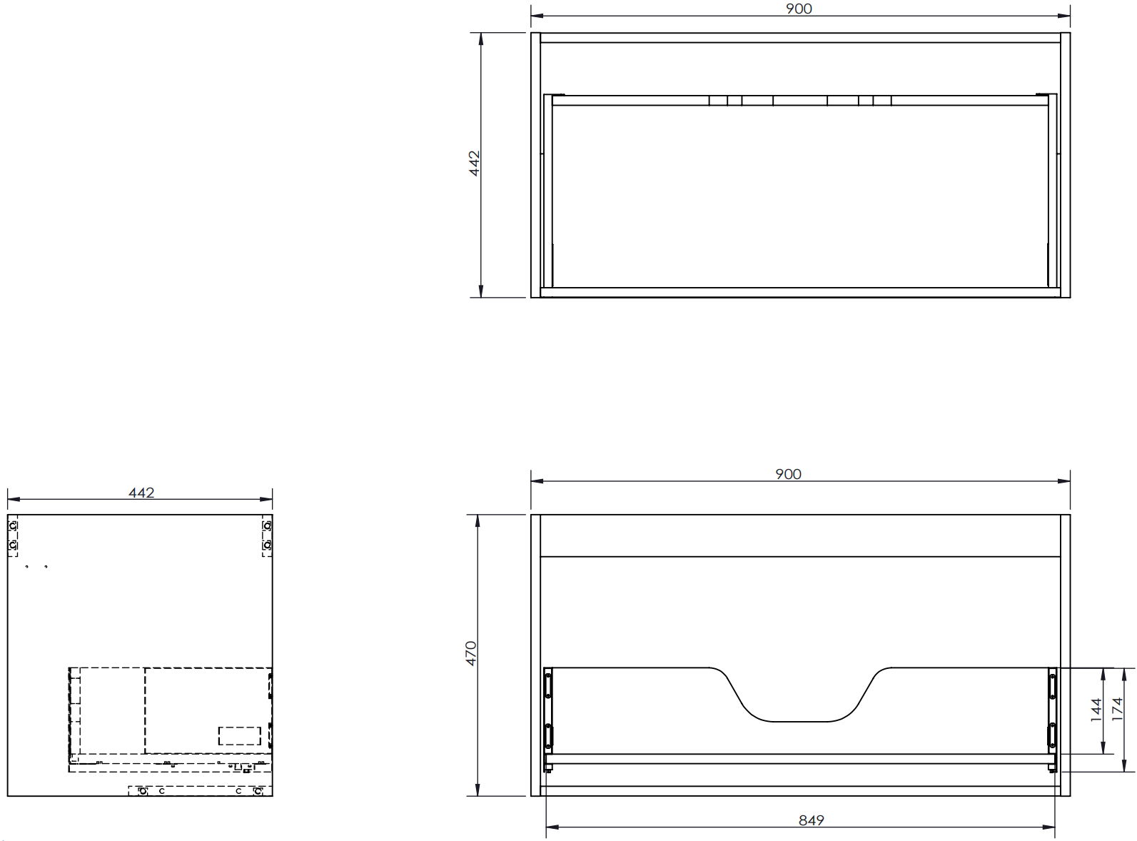 Výřez v zásuvce je navržen tak, aby pojmul sifon, který je nezbytný v instalacích umyvadlových. Díky tomu může být nábytek plně funkčně namontován, aniž by bylo nutné vzdát se prostoru v zásuvce ve prospěch instalace.