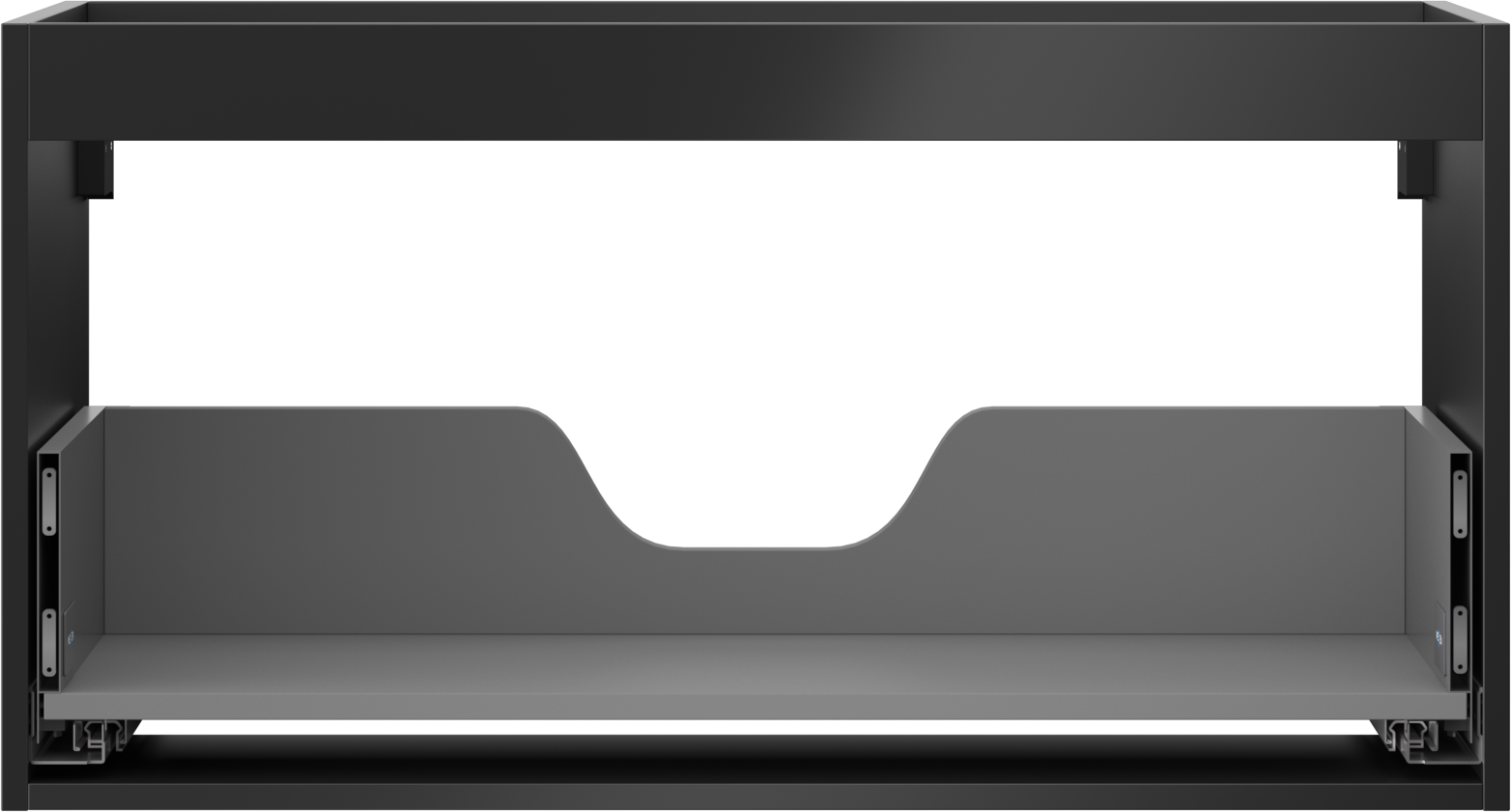 Výřez v zásuvce je navržen tak, aby pojmul sifon, který je nezbytný v instalacích umyvadlových. Díky tomu může být nábytek plně funkčně namontován, aniž by bylo nutné vzdát se prostoru v zásuvce ve prospěch instalace.