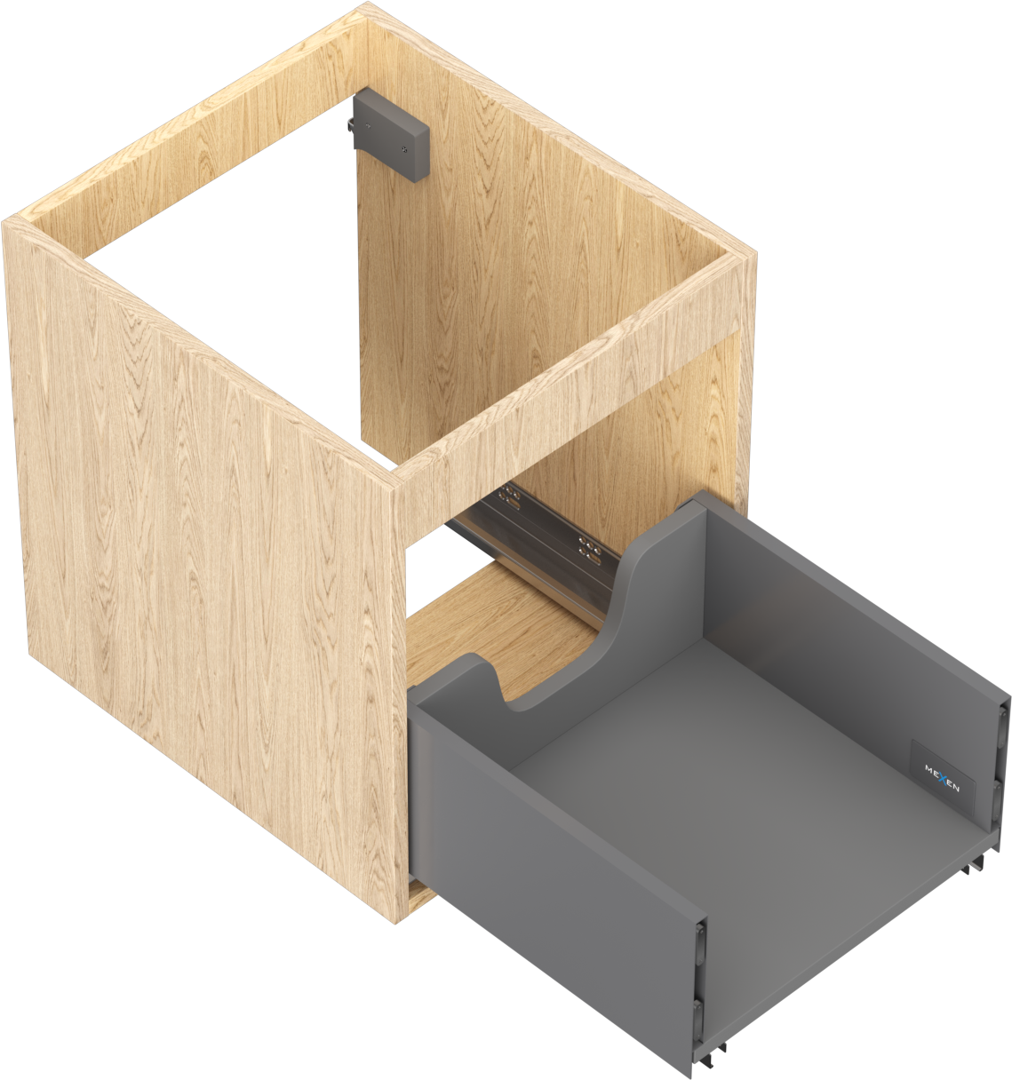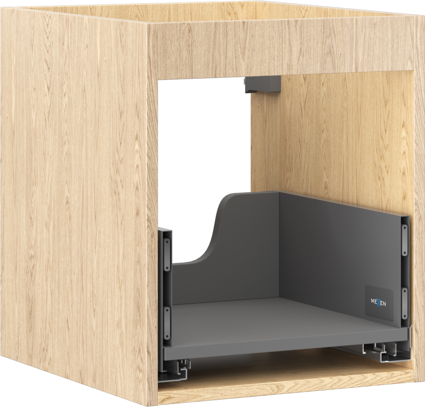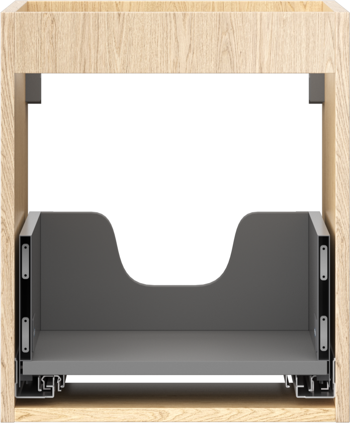 Výřez v zásuvce je navržen tak, aby pojmul sifon, který je nezbytný v instalacích umyvadlových. Díky tomu může být nábytek plně funkčně namontován, aniž by bylo nutné vzdát se prostoru v zásuvce ve prospěch instalace.
