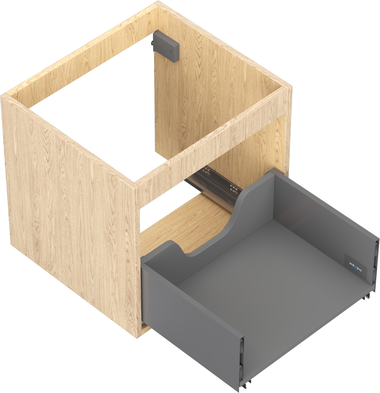 Výřez v zásuvce je navržen tak, aby pojmul sifon, který je nezbytný v instalacích umyvadlových. Díky tomu může být nábytek plně funkčně namontován, aniž by bylo nutné vzdát se prostoru v zásuvce ve prospěch instalace.