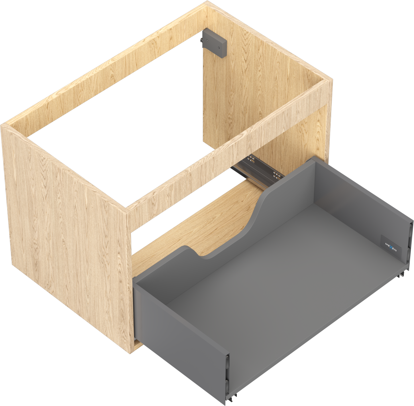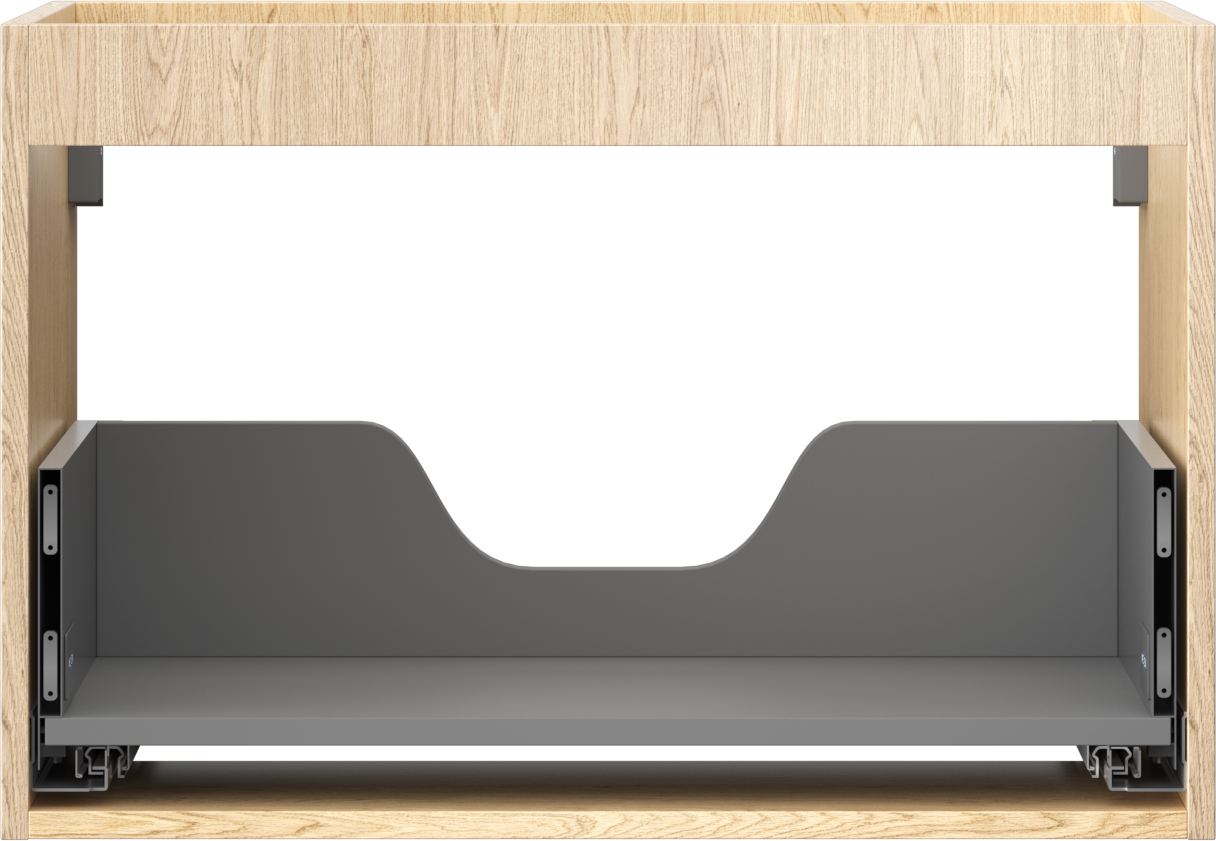 Výřez v zásuvce je navržen tak, aby pojmul sifon, který je nezbytný v instalacích umyvadlových. Díky tomu může být nábytek plně funkčně namontován, aniž by bylo nutné vzdát se prostoru v zásuvce ve prospěch instalace.