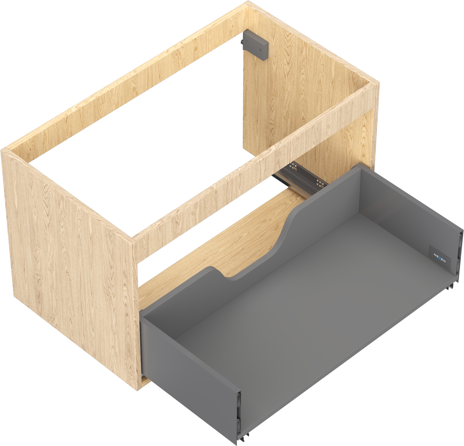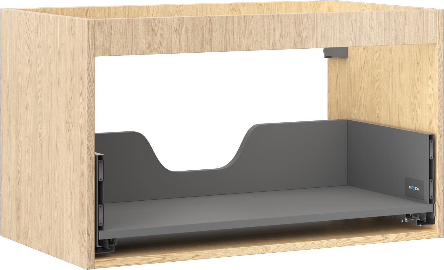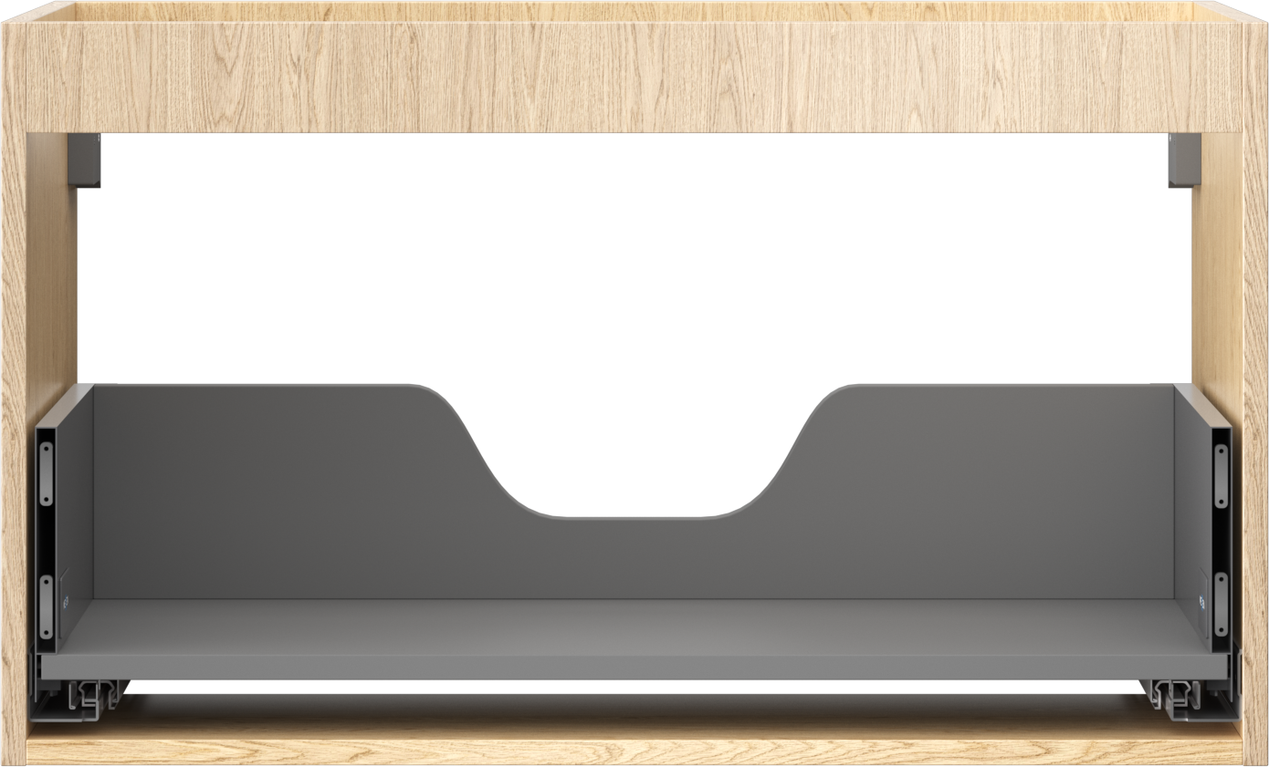 Výřez v zásuvce je navržen tak, aby pojmul sifon, který je nezbytný v instalacích umyvadlových. Díky tomu může být nábytek plně funkčně namontován, aniž by bylo nutné vzdát se prostoru v zásuvce ve prospěch instalace.