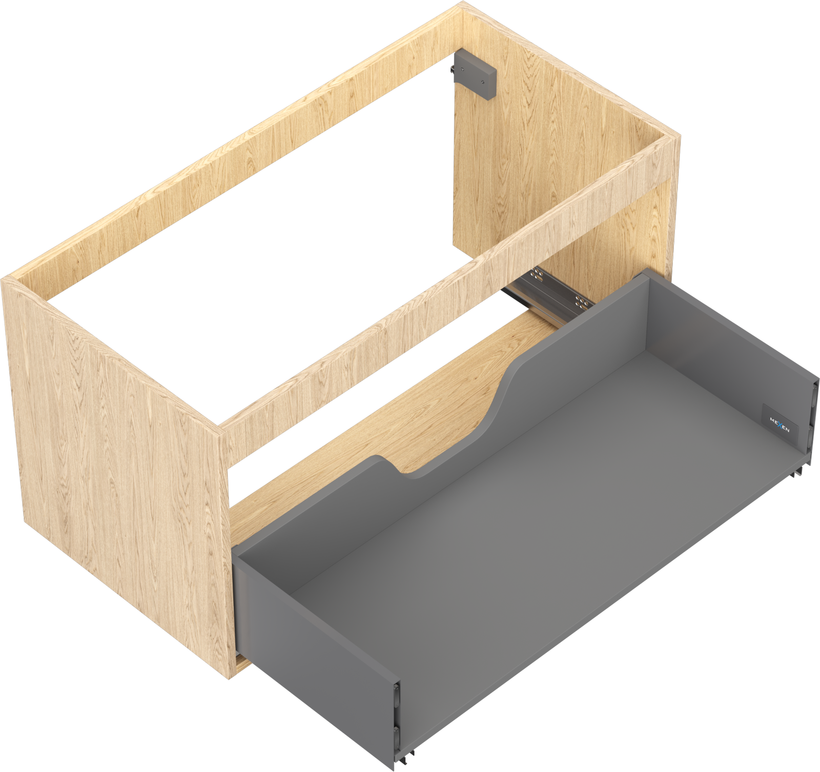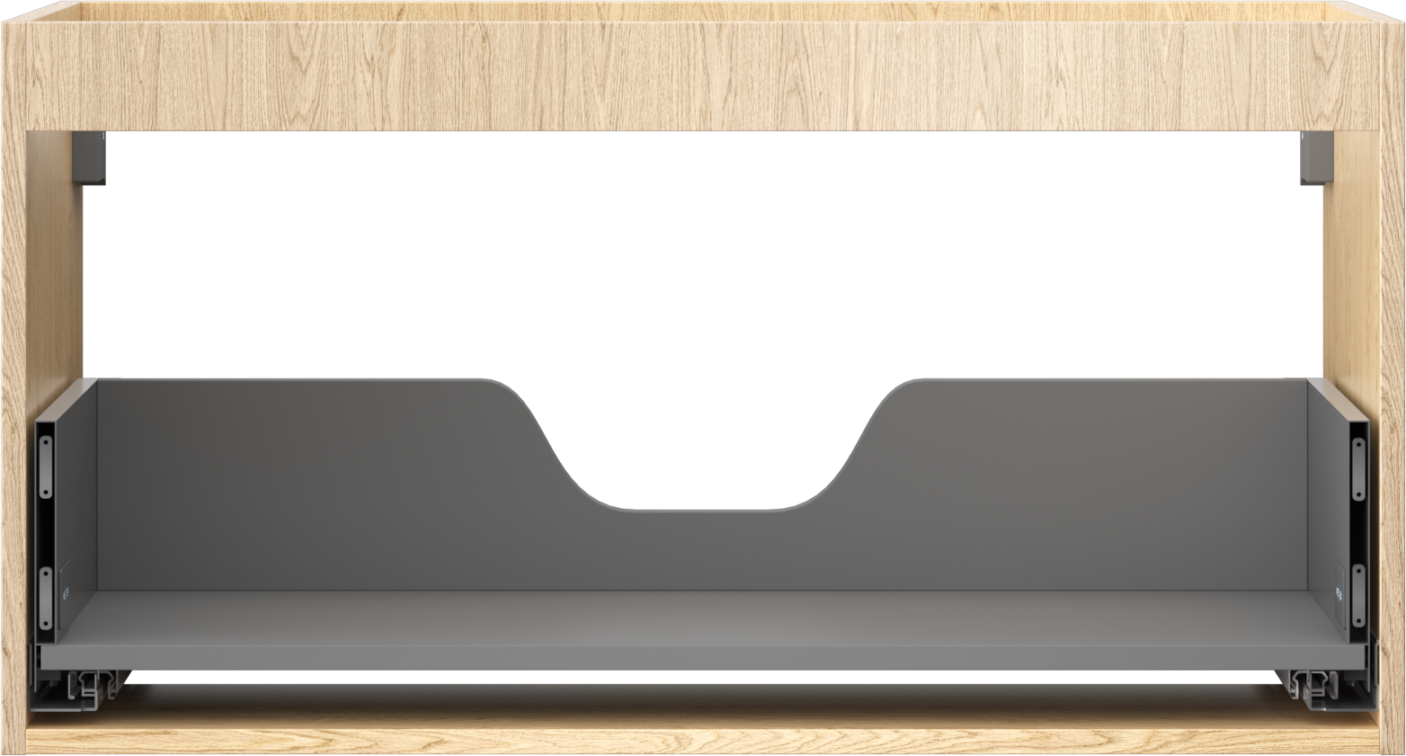 Výřez v zásuvce je navržen tak, aby pojmul sifon, který je nezbytný v instalacích umyvadlových. Díky tomu může být nábytek plně funkčně namontován, aniž by bylo nutné vzdát se prostoru v zásuvce ve prospěch instalace.