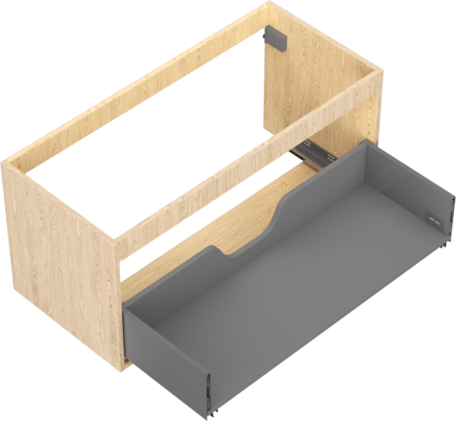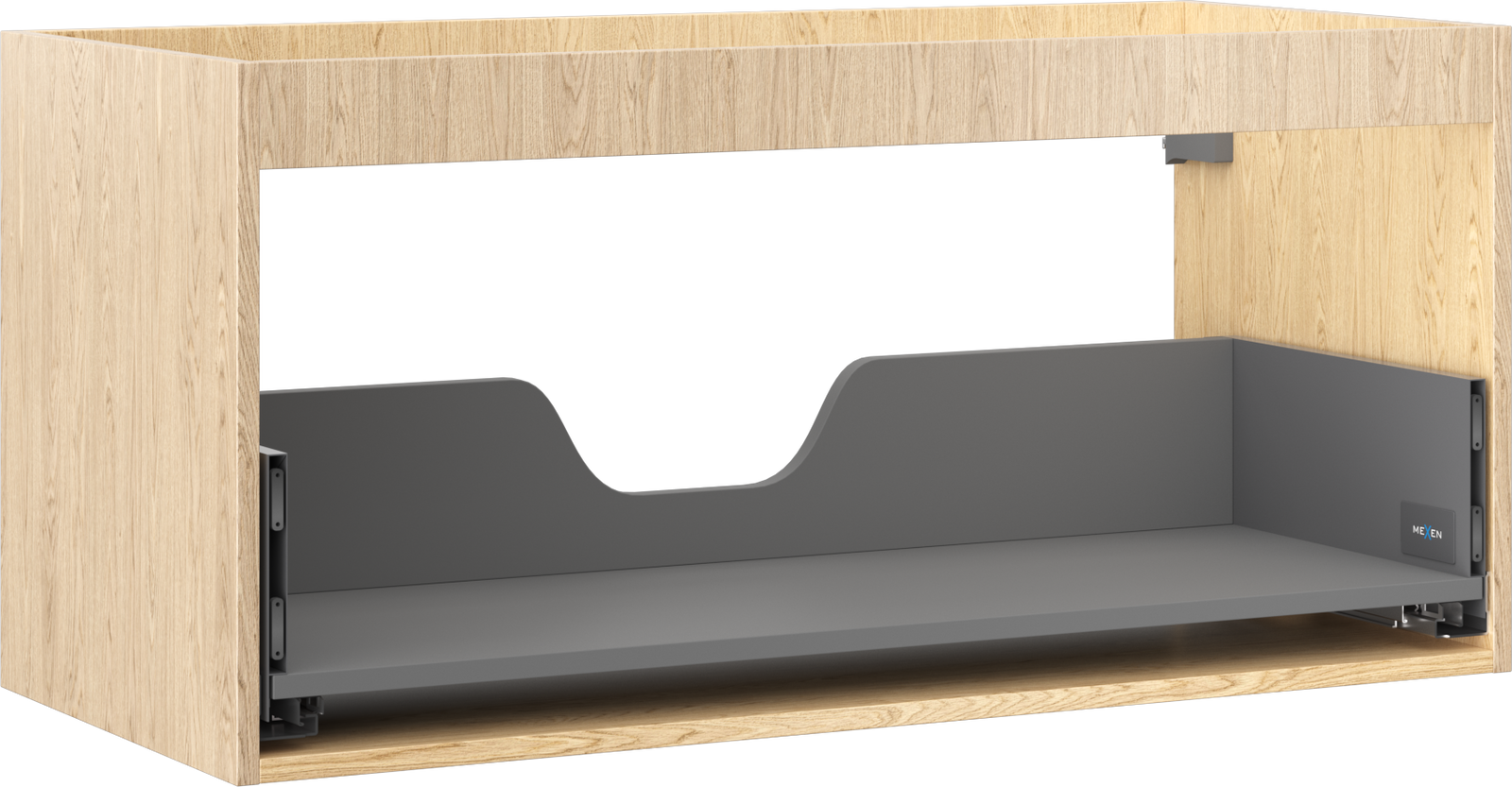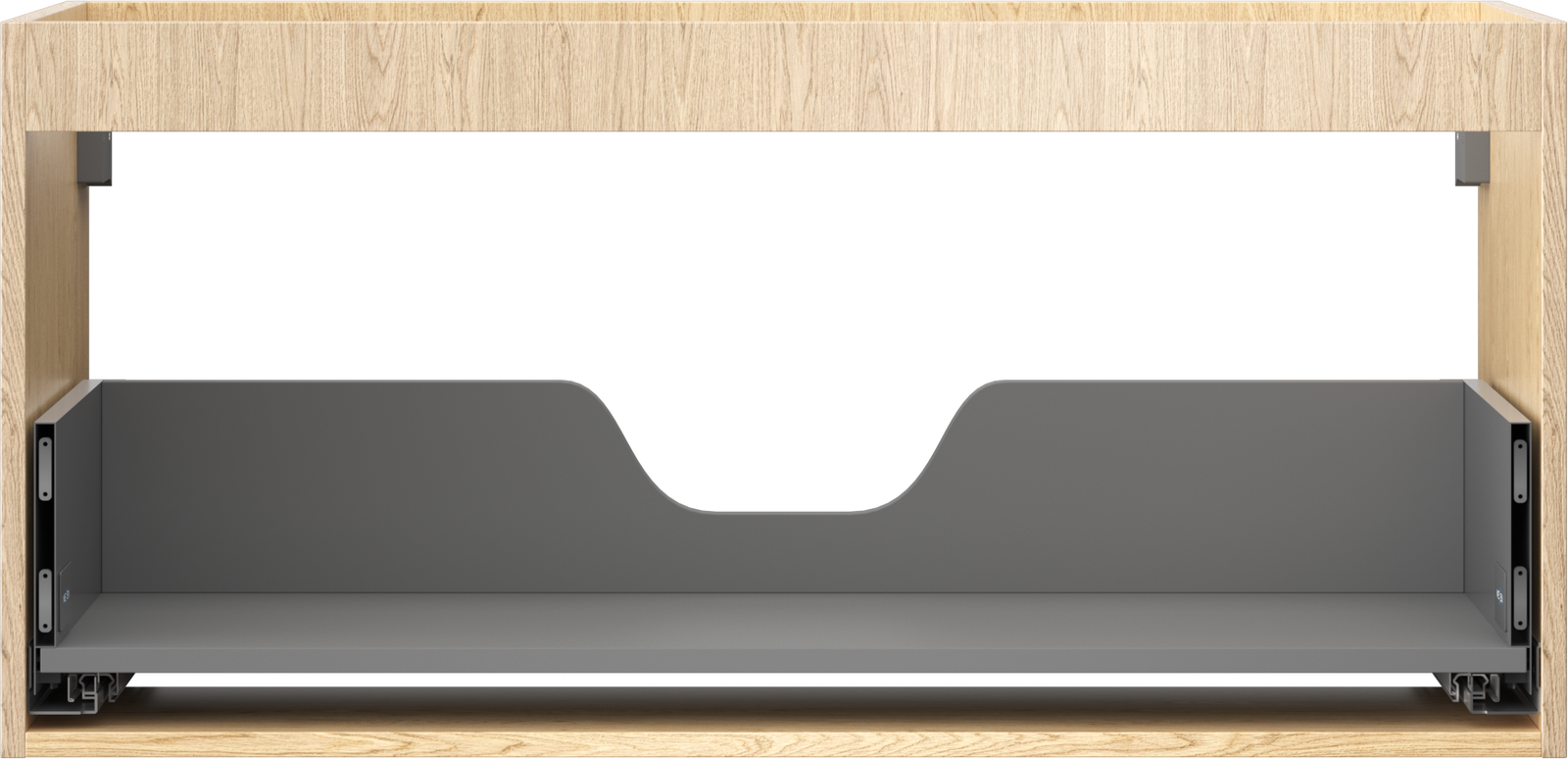 Výřez v zásuvce je navržen tak, aby pojmul sifon, který je nezbytný v instalacích umyvadlových. Díky tomu může být nábytek plně funkčně namontován, aniž by bylo nutné vzdát se prostoru v zásuvce ve prospěch instalace.