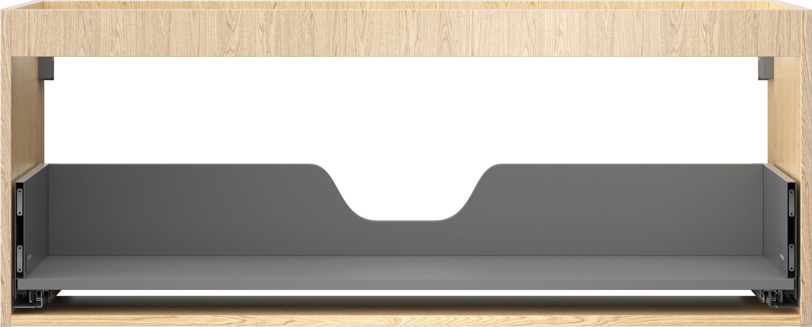 Výřez v zásuvce je navržen tak, aby pojmul sifon, který je nezbytný v instalacích umyvadlových. Díky tomu může být nábytek plně funkčně namontován, aniž by bylo nutné vzdát se prostoru v zásuvce ve prospěch instalace.